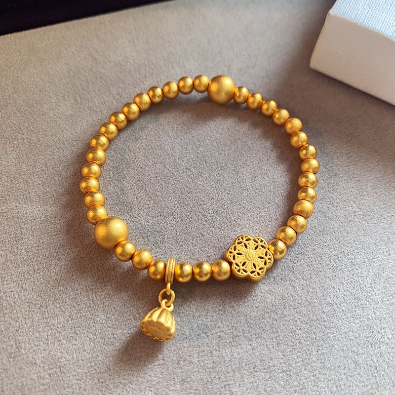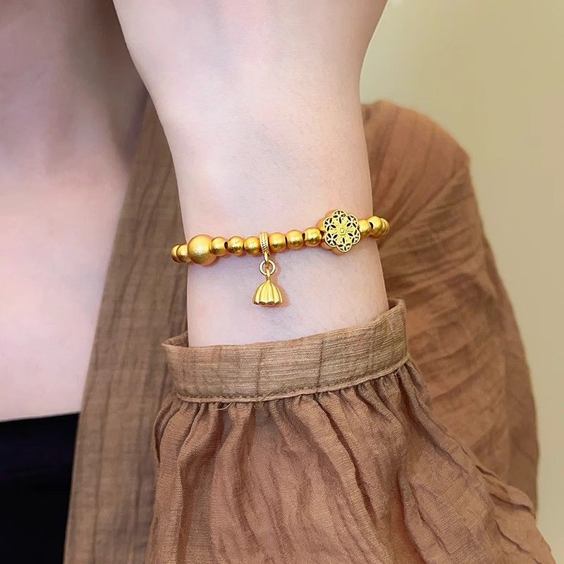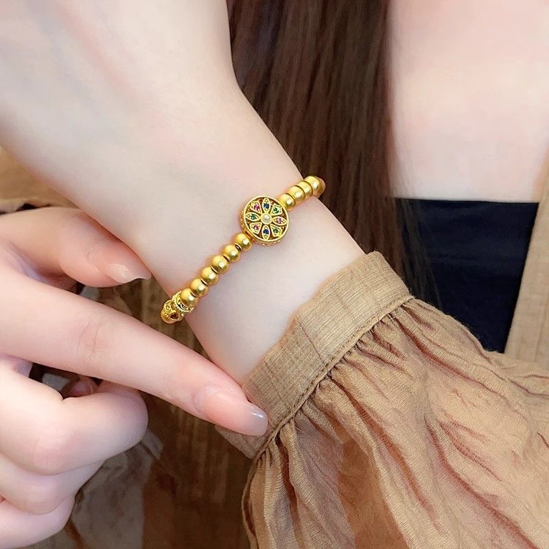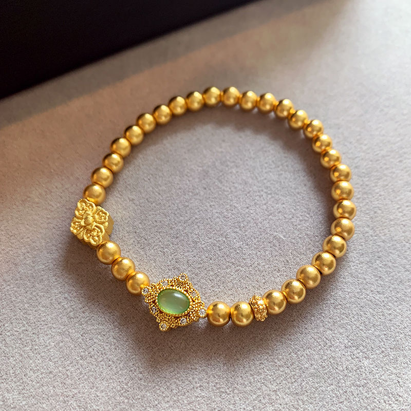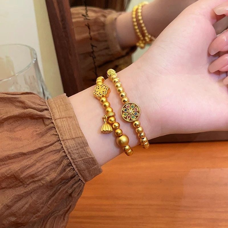 Аутентичный долговечный древний браслет из песочного золота с бусинами для женщин, нишевый универсальный дизайн золотого цвета для женщин