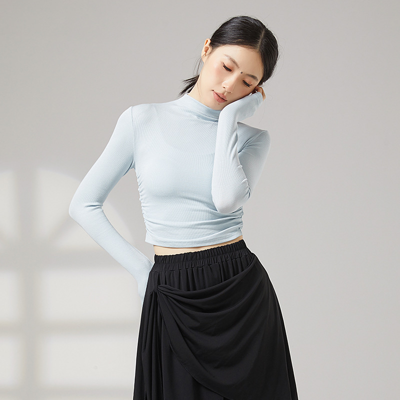 Одежда для йоги с полувысоким воротником для женщин, эластичная одежда для фитнеса, спортивные топы с длинными рукавами для бега, классическая одежда для танцев на осень и зиму.