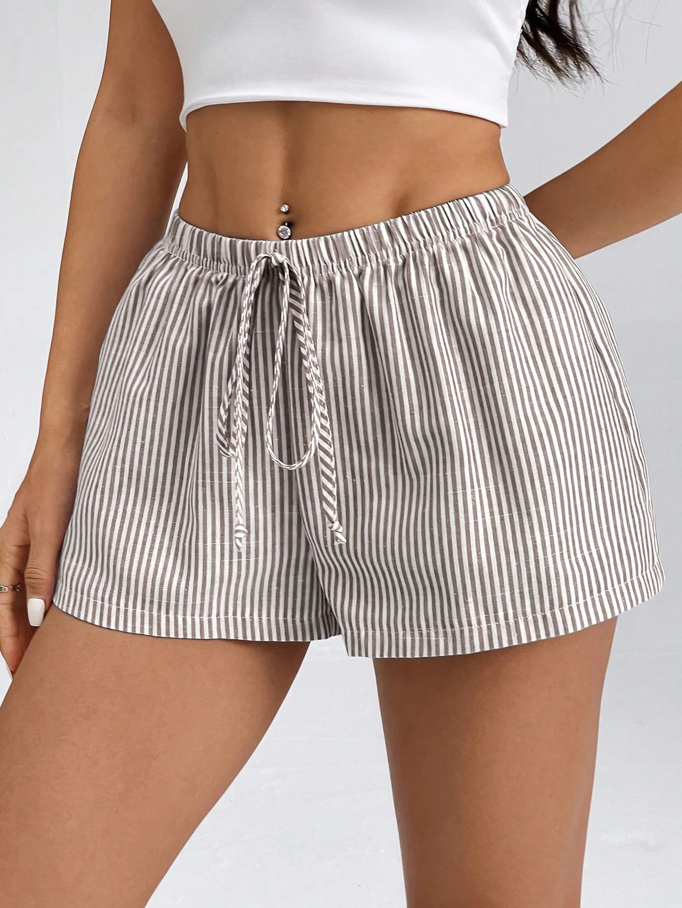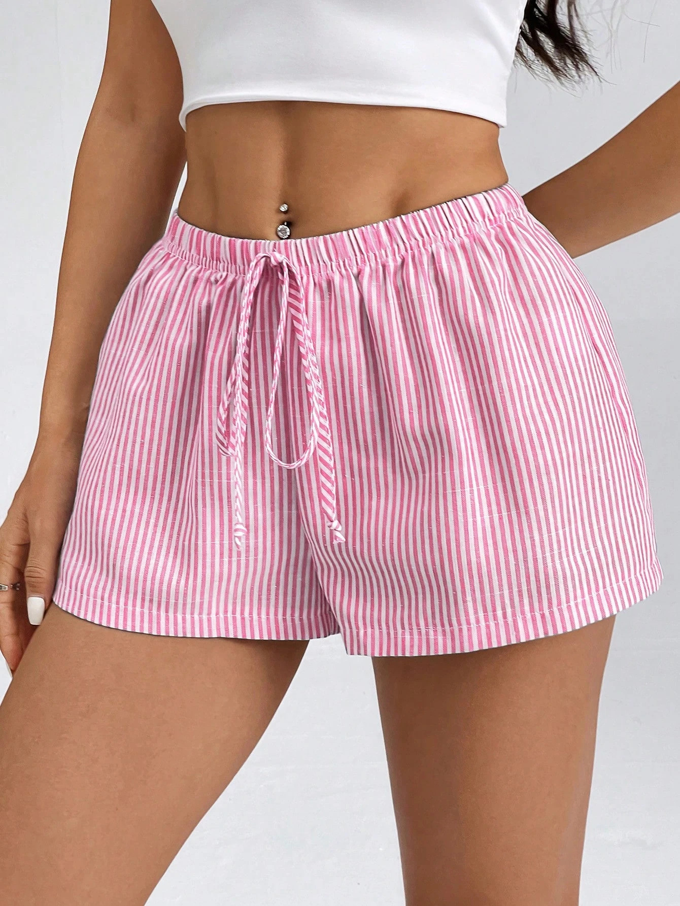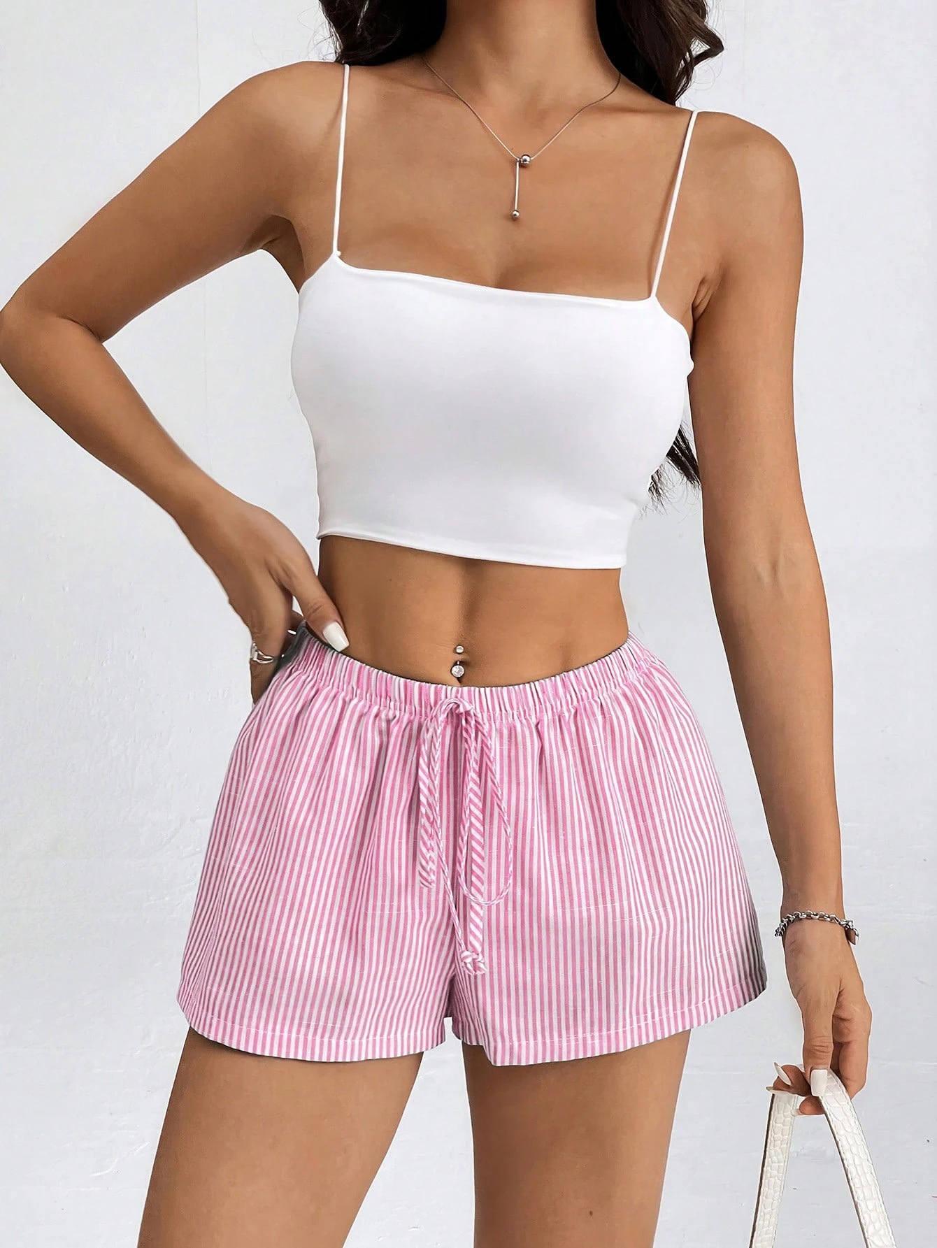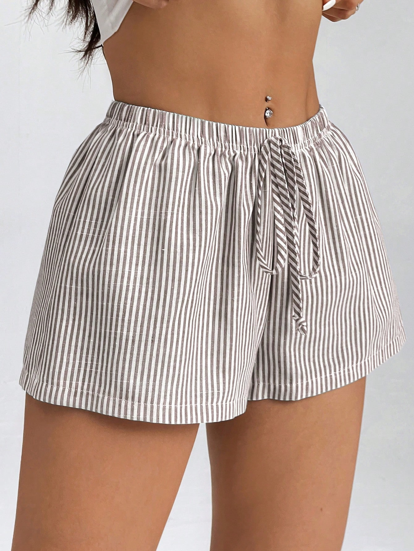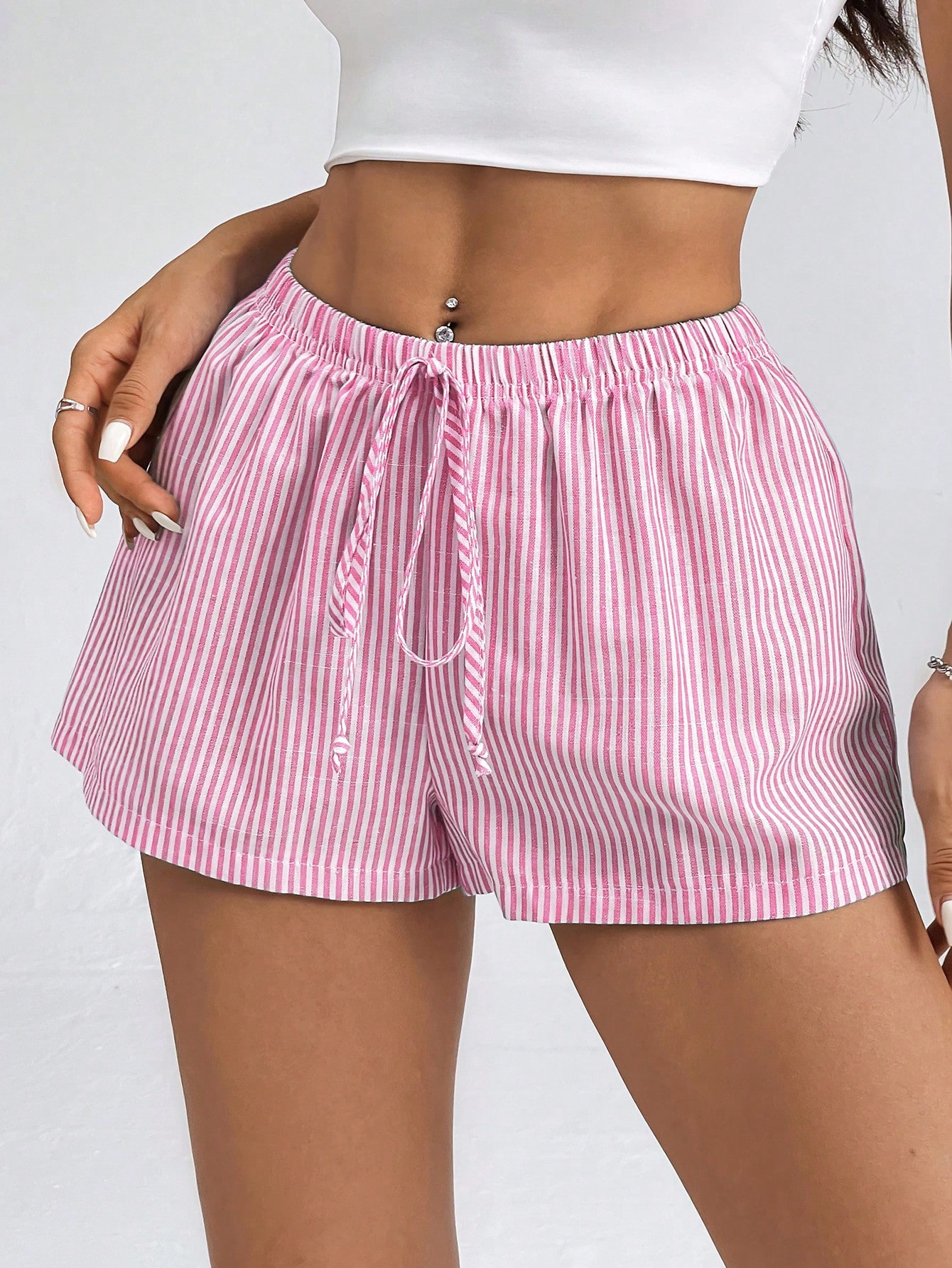 Трансграничная внешнеторговая чистая ветреная основа светлого цвета в полоску обтягивая шнуровка повседневная дикая домашняя брюка девушка свободная и тонкая