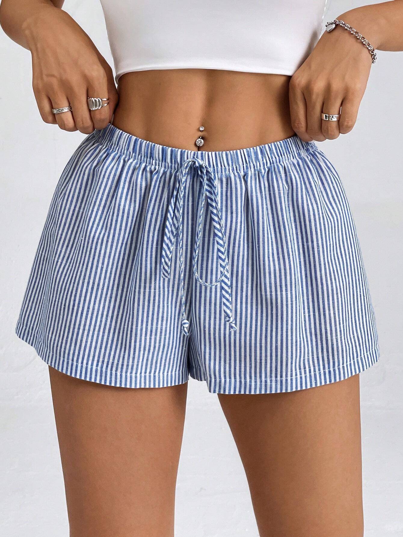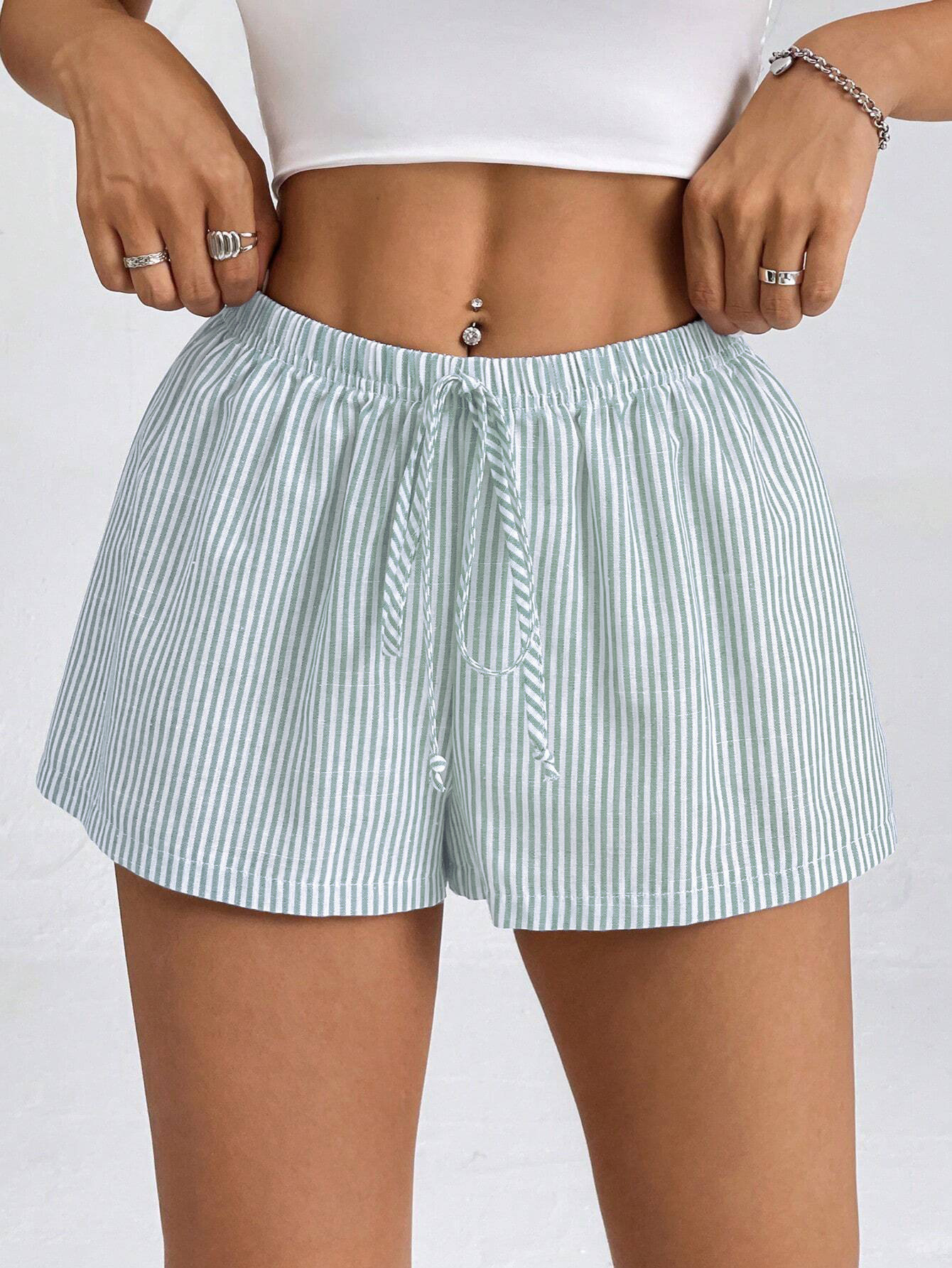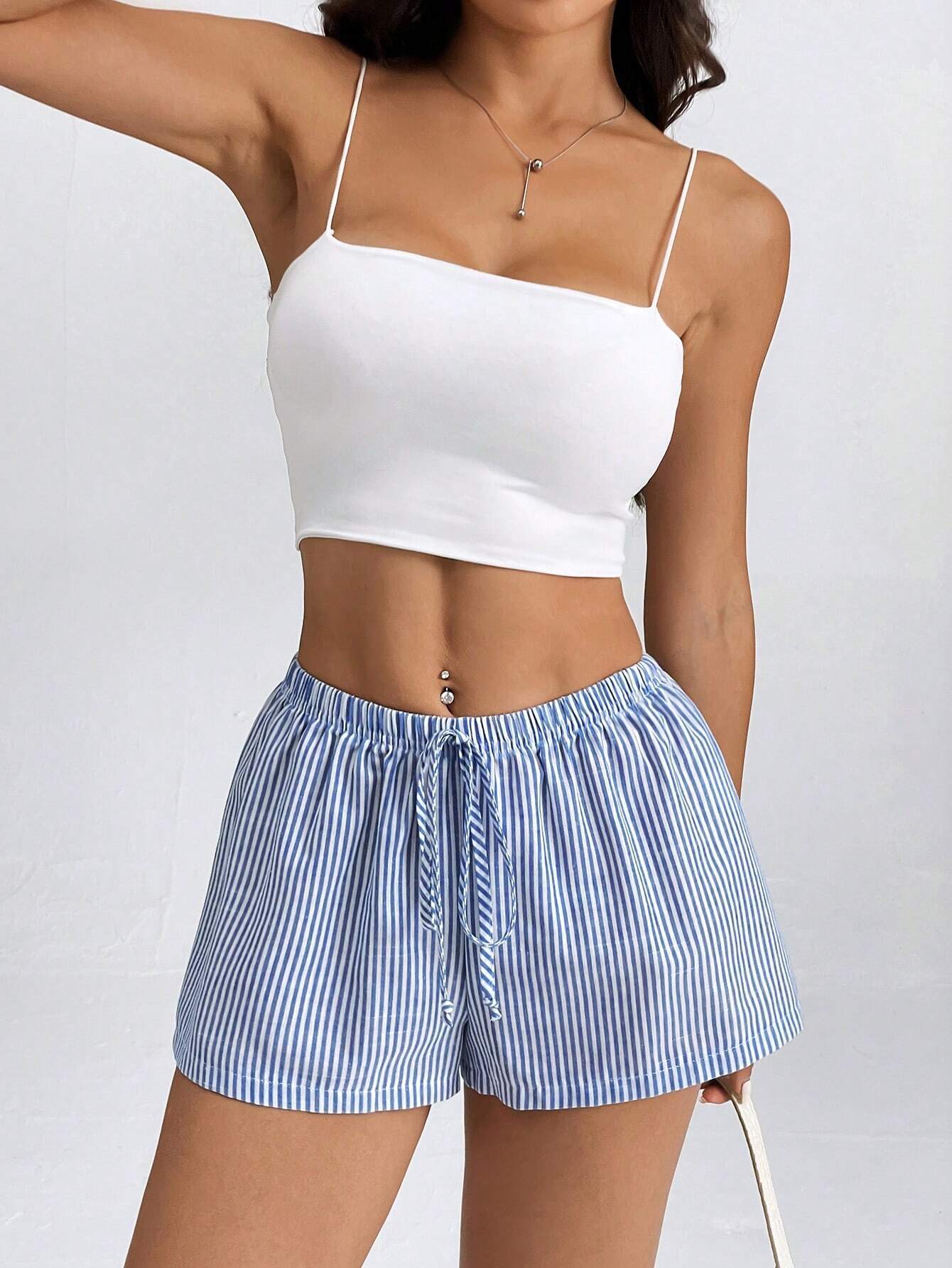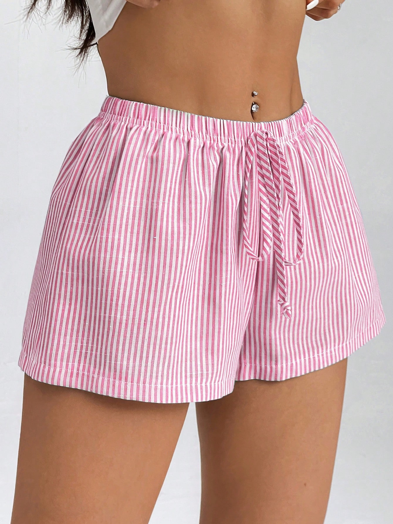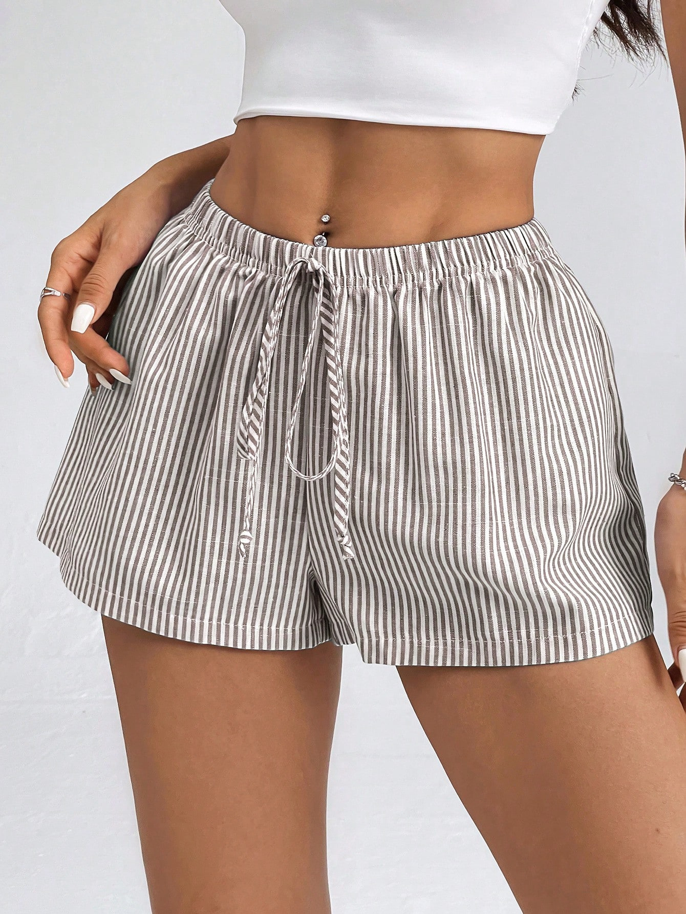 Трансграничная внешнеторговая чистая ветреная основа светлого цвета в полоску обтягивая шнуровка повседневная дикая домашняя брюка девушка свободная и тонкая