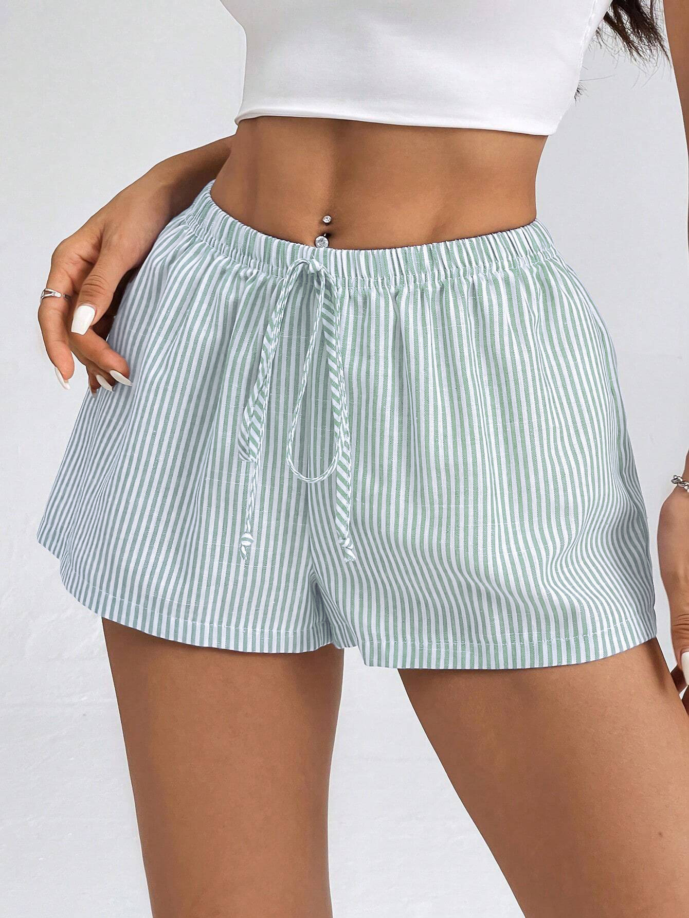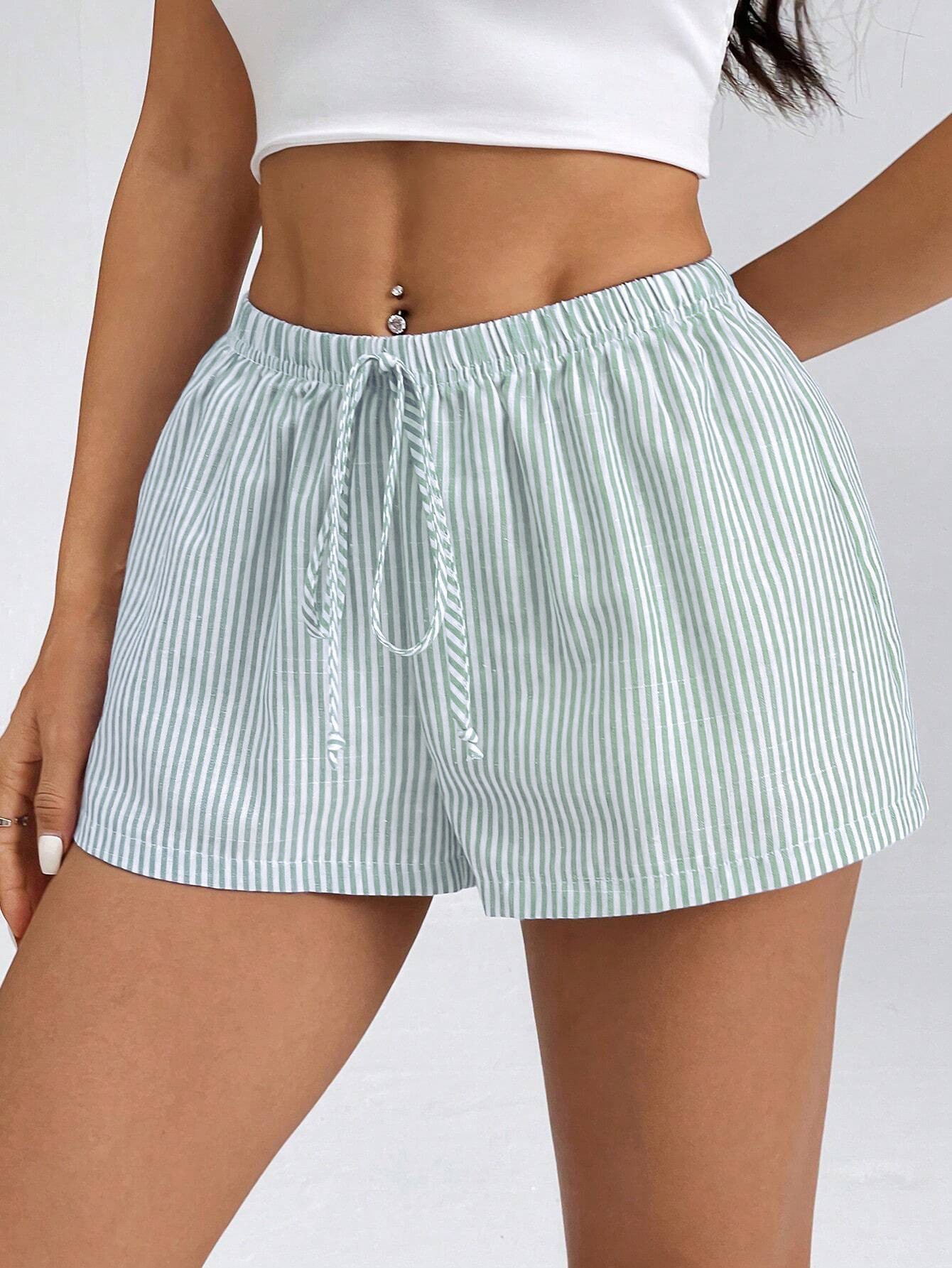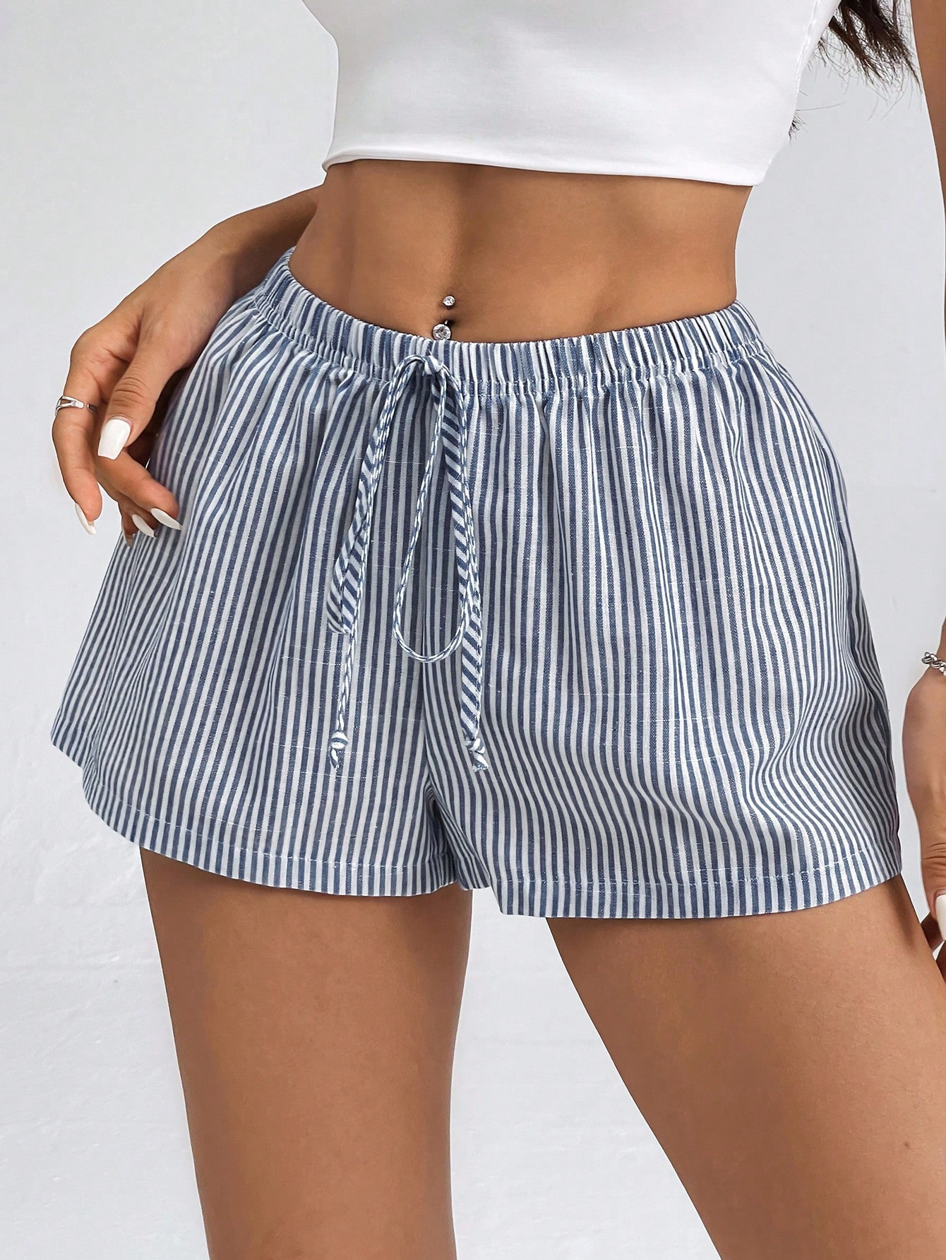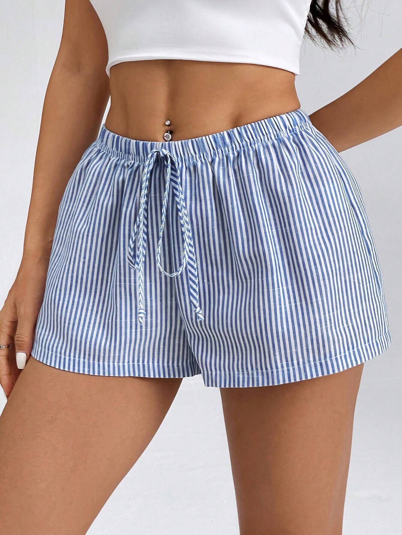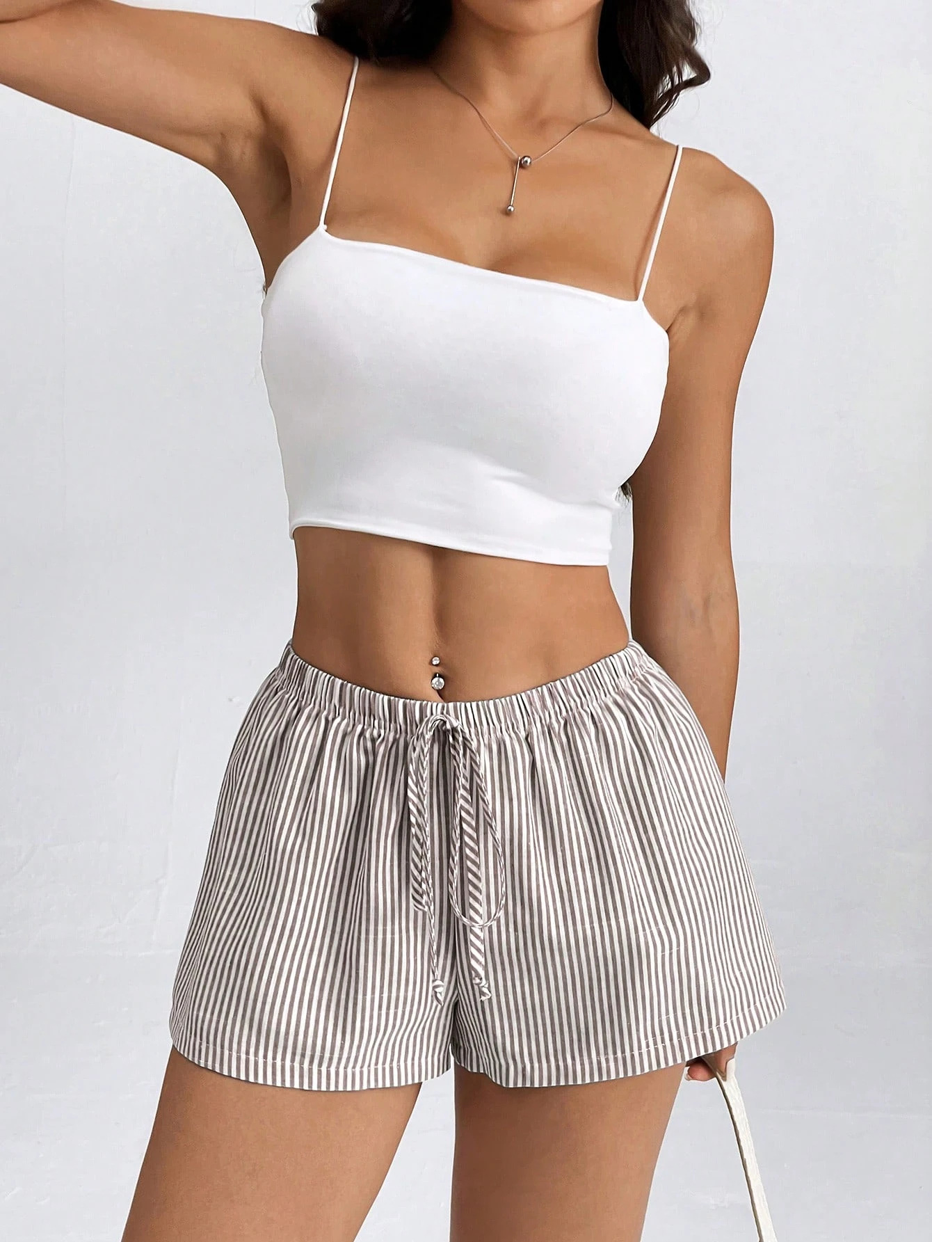 Трансграничная внешнеторговая чистая ветреная основа светлого цвета в полоску обтягивая шнуровка повседневная дикая домашняя брюка девушка свободная и тонкая