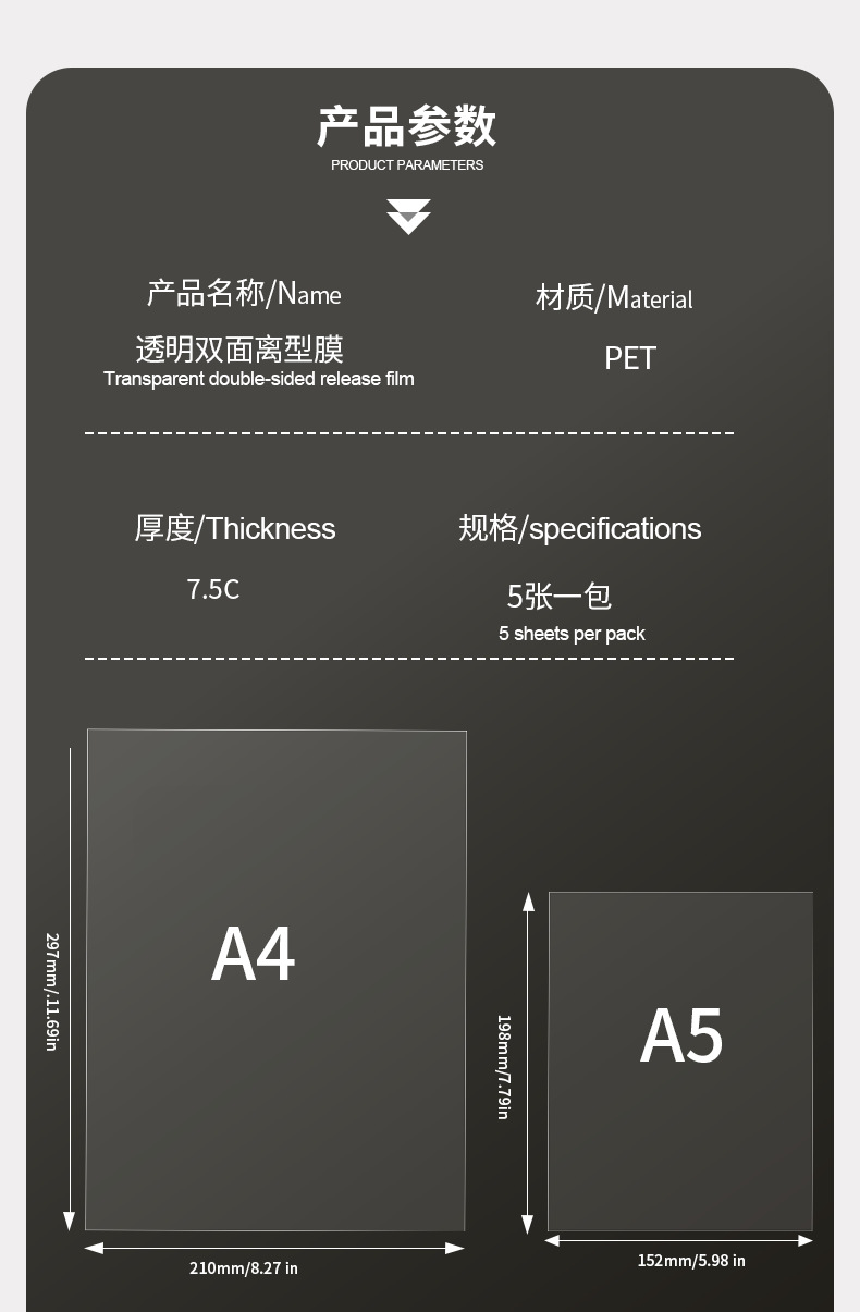 7.5c Прозрачная pet отделка бумаги B5A5 разделяй пленка односторонняя двусторонняя ручная наклейка
