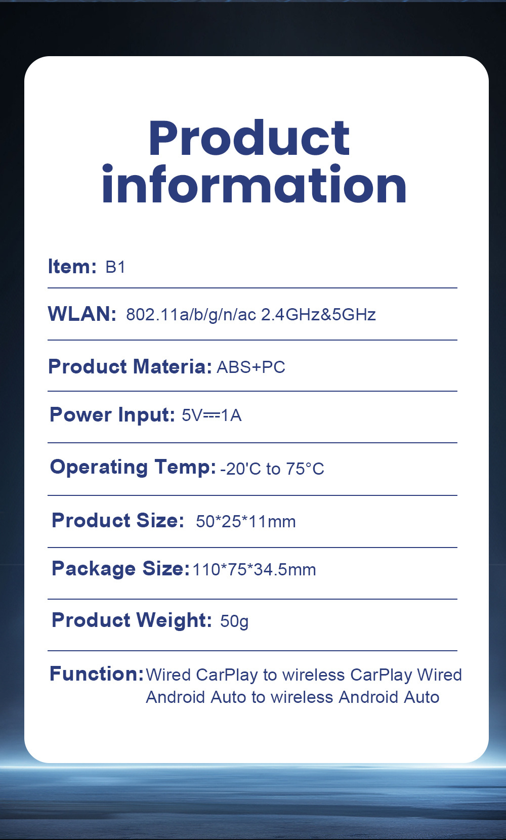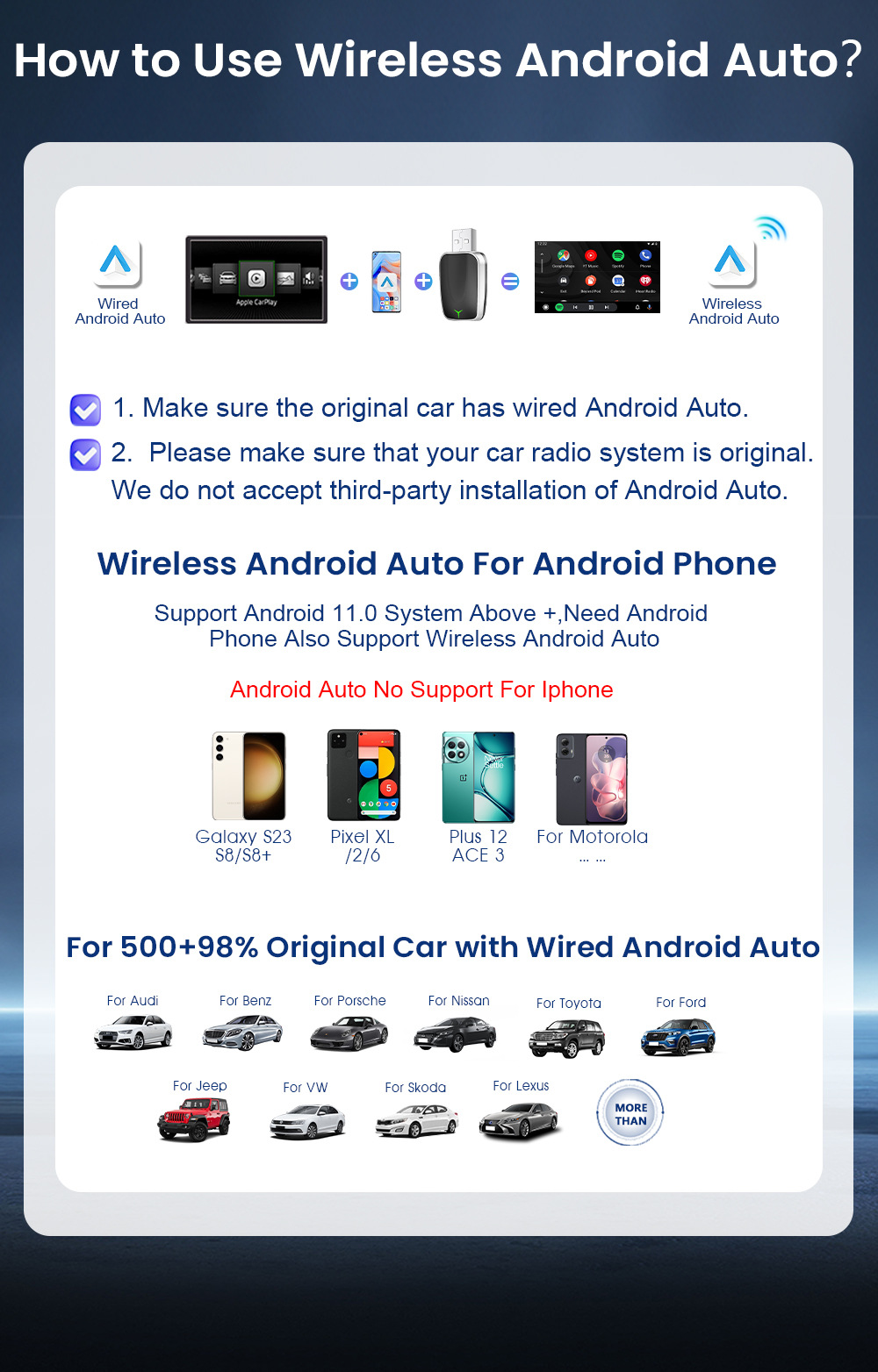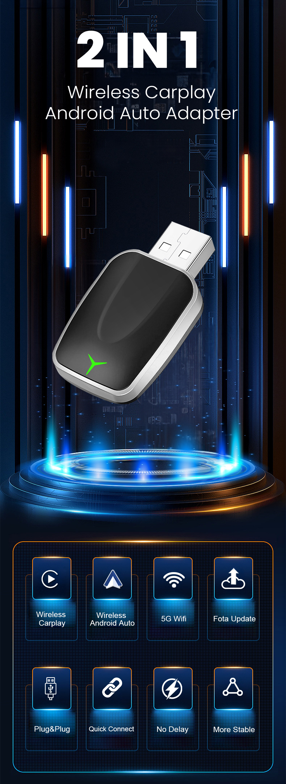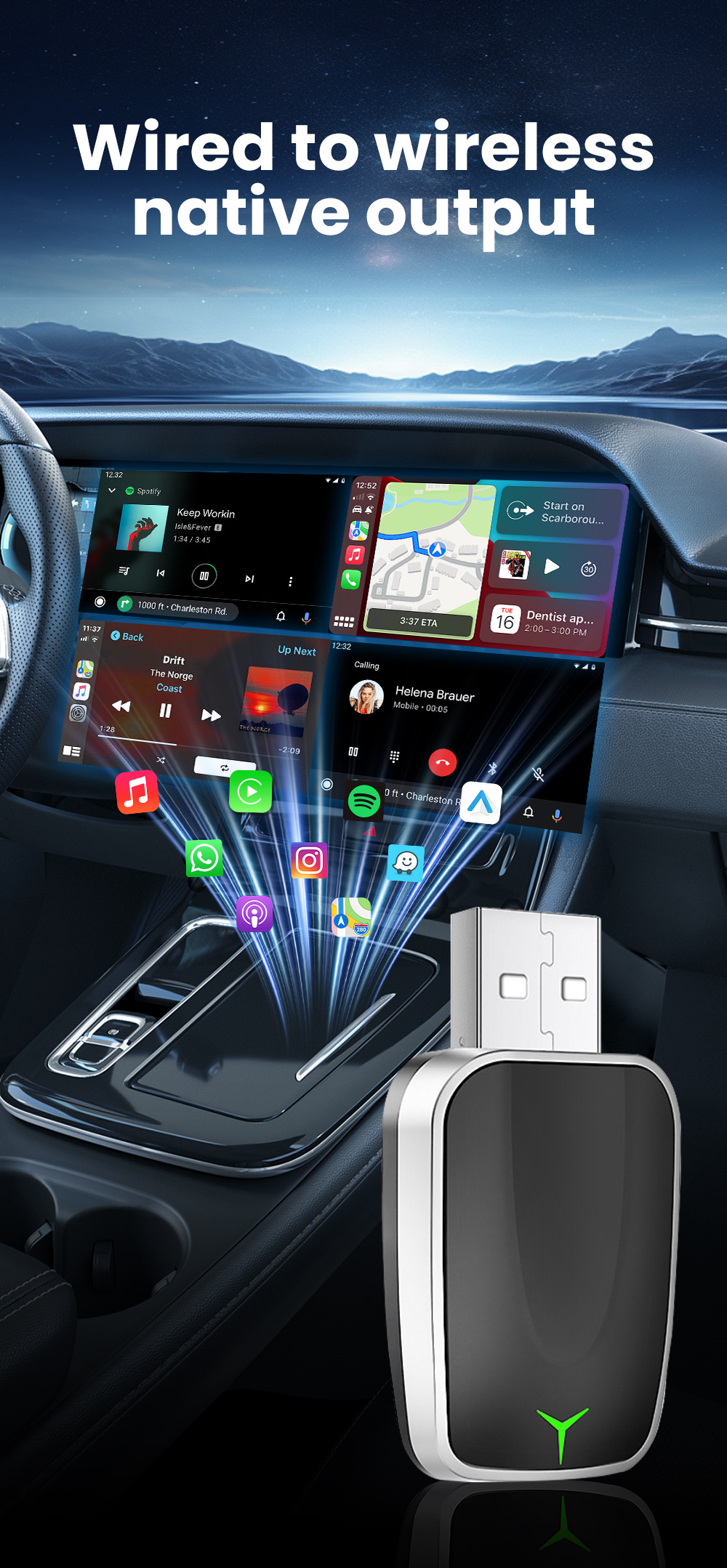 Проводной в беспроводной адаптер CarPlay/Android Auto