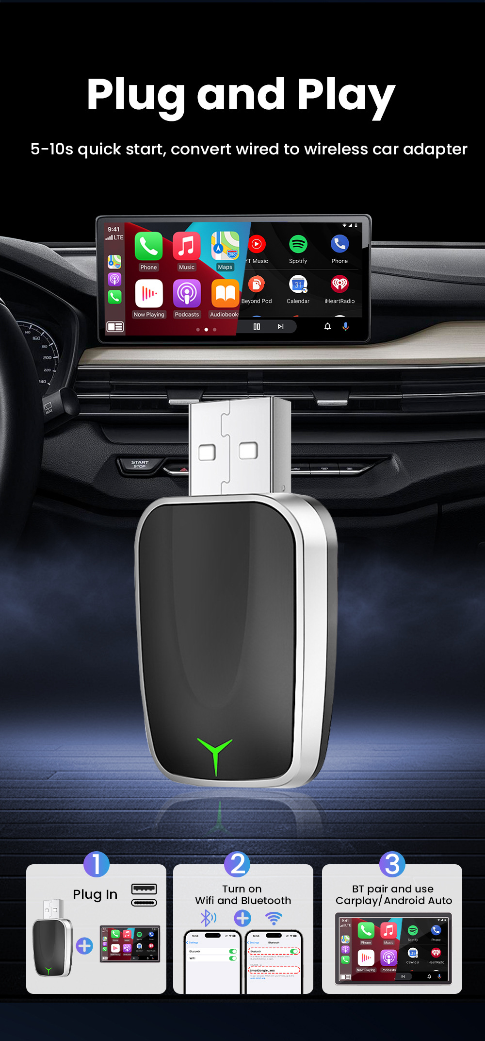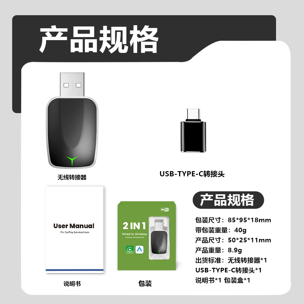 CarPlay Box с проводным подключением к беспроводному Android Auto, Plug and Play, 2-в-1 умная автомобильная навигация