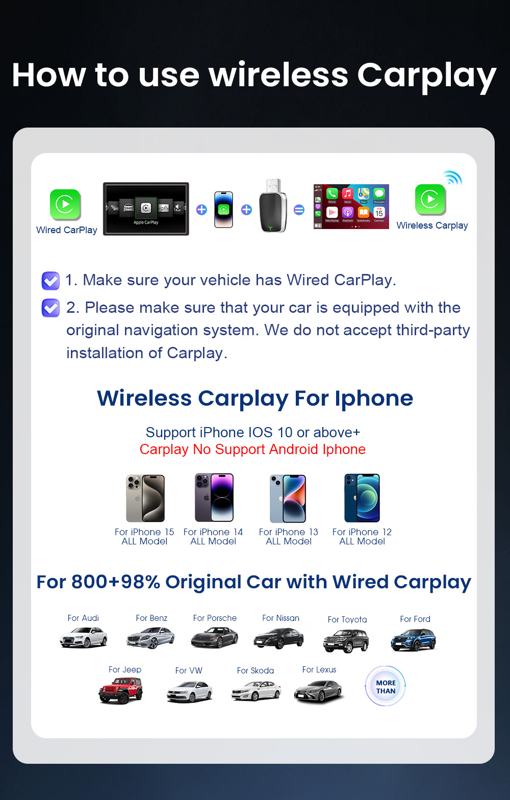 Подходит для автомобиля со встроенной системой Carplay.