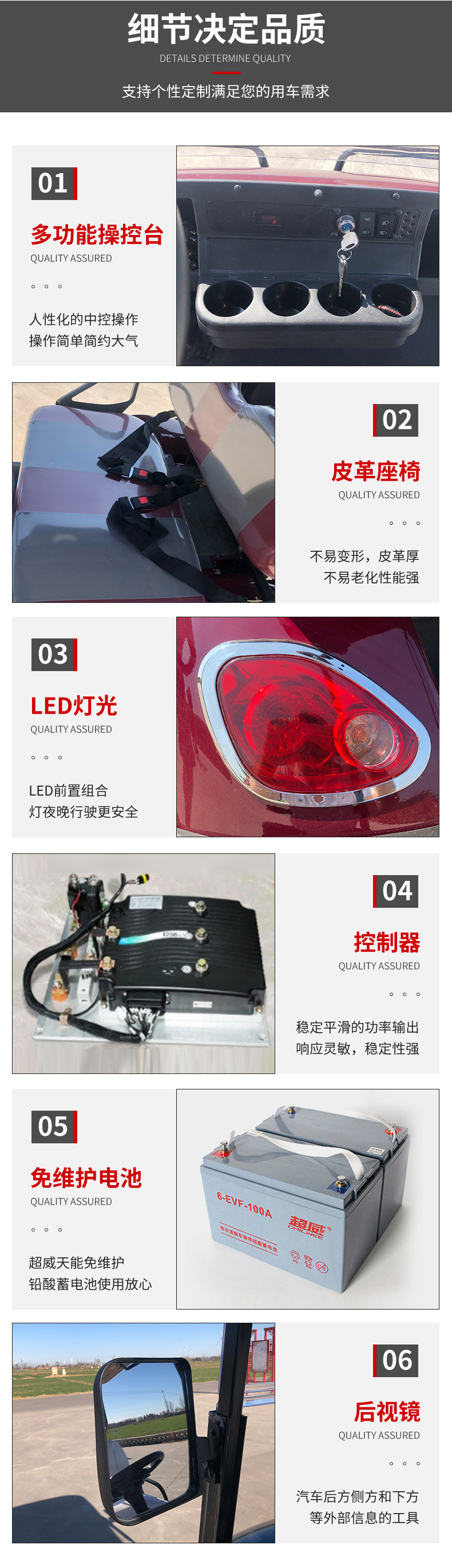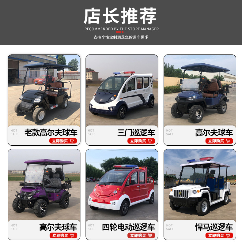 Электрические гольф-кары для трансграничного экспорта, подходят для экскурсий, обслуживания гостей, использования в живописных местах, парках, жилых районах и как транспорт для перемещений по кампусам, вместимостью от 2 до 10 мест.