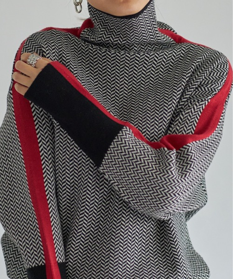 Внешняя торговля, трансграничный осенне-зимний дизайн, ленивые и свободные контрастные рукава, трикотаж с высоким воротником из искусственной шерсти для женщин, осень и зима.