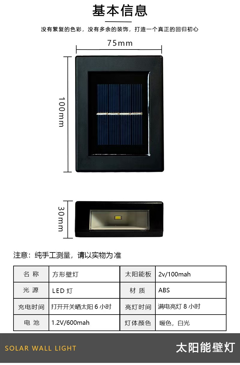 功能: 常亮上下发光 产品尺寸: 100*75*30(大号)80*60*23(小号) 材质: ABS 包装: 彩盒 箱规: 200PCS/CTNS 小号38.9*29*47CM/大号48/44/49.5 毛重: 小号15.5KG/大号23.5KG 彩盒(115*90*40MM113克)大号/(90*70*35MM70克)