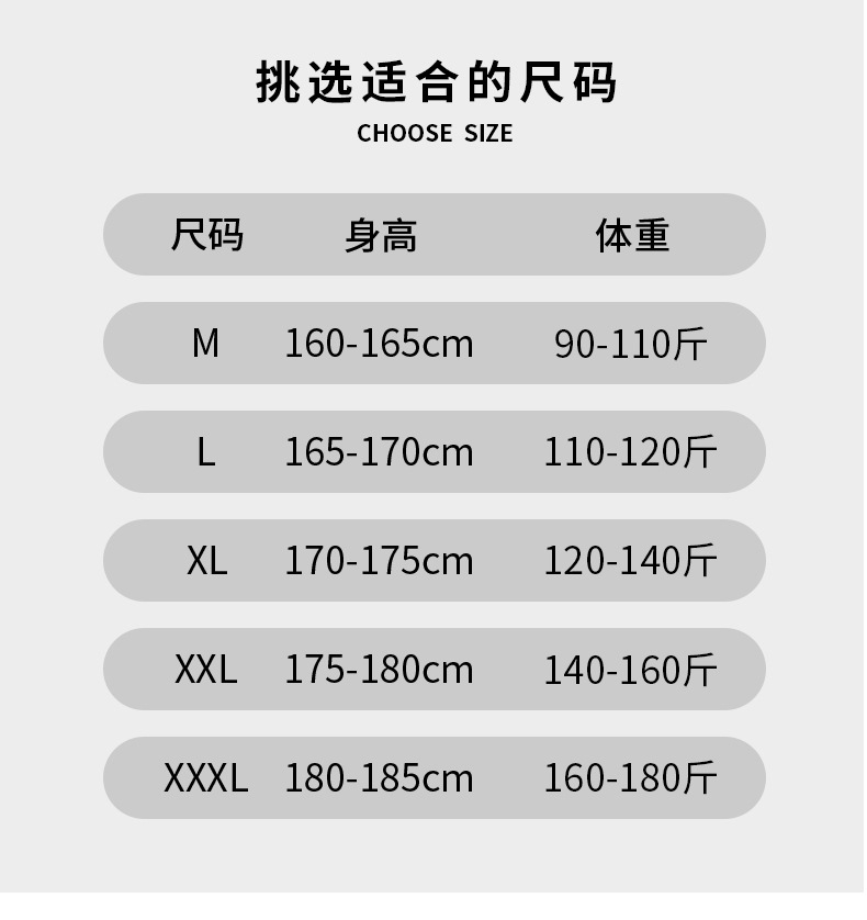 М【 45-55kg 】; Л【 55-60kg 】; ХЛ【 60-70kg 】; XXL【 70-80kg 】; XXXL【 80-90kg 】