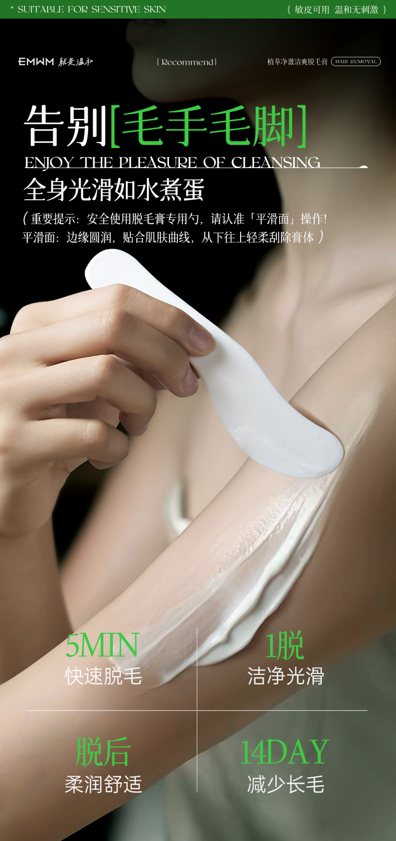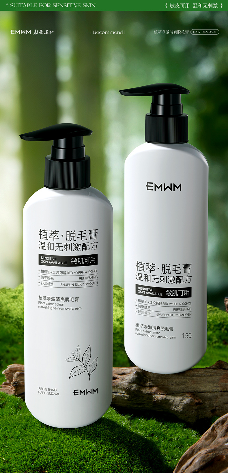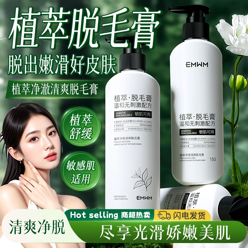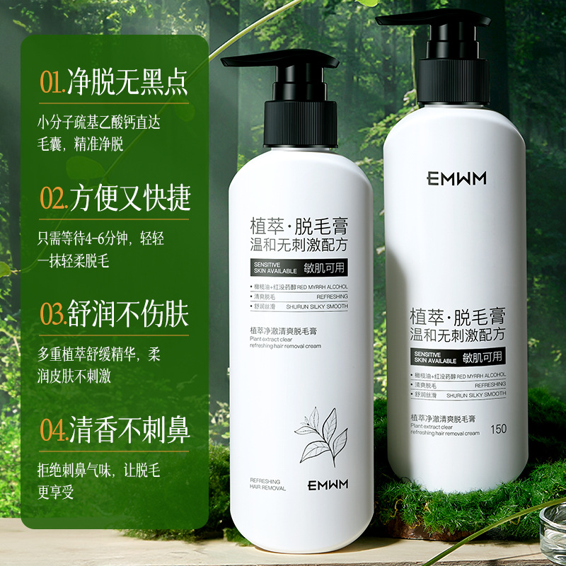 Чистый освежающий крем для удаления волос с экстрактом растений EMWM 150 г; Крем для депиляции EMWM с экстрактом растений, очищающий и увлажняющий, 200 г