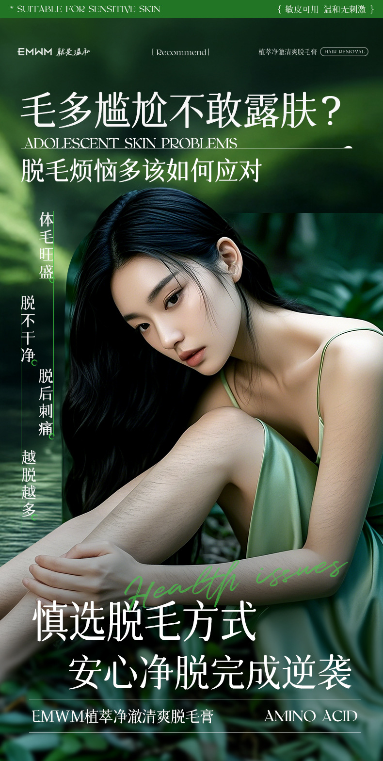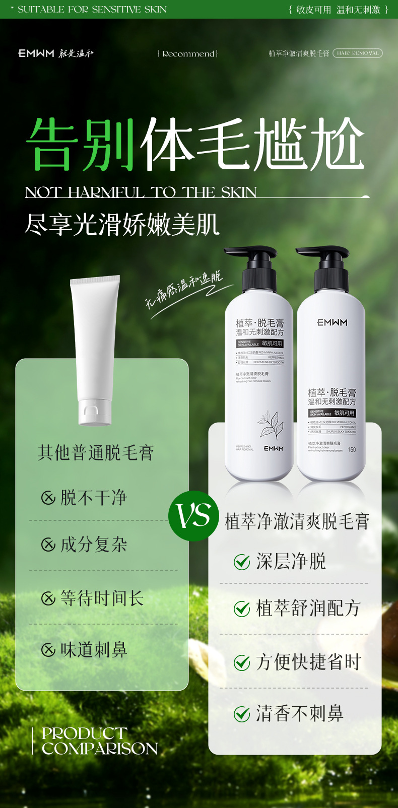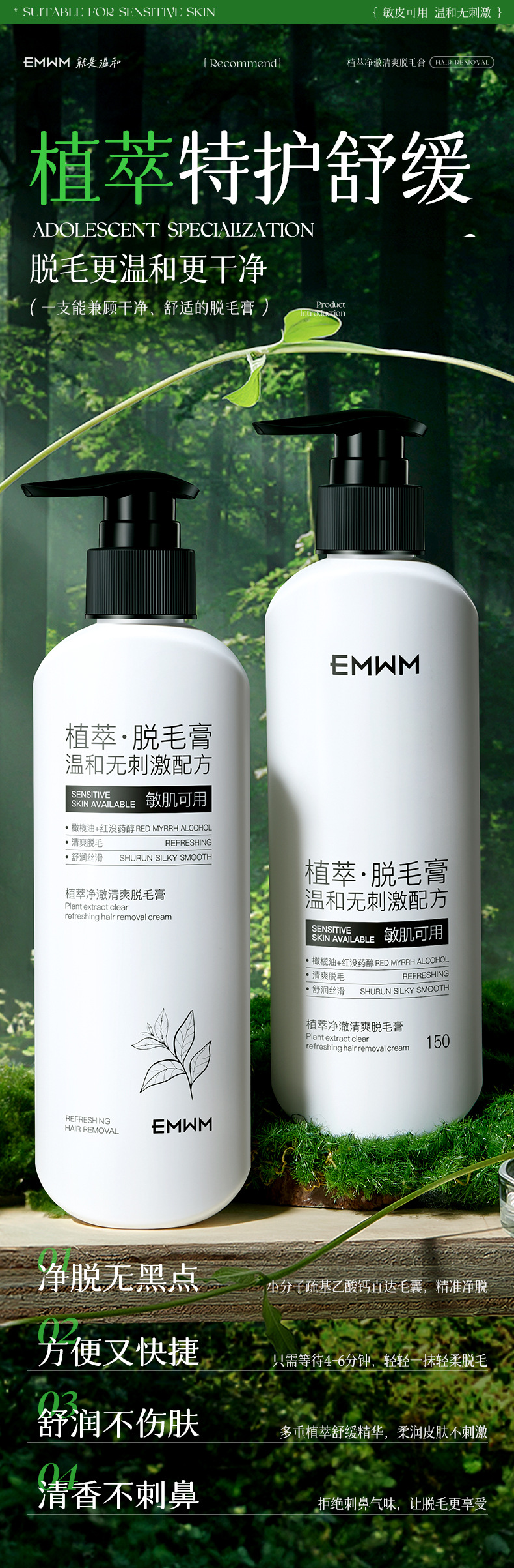 Чистый освежающий крем для удаления волос с экстрактом растений EMWM 150 г; Крем для депиляции EMWM с экстрактом растений, очищающий и увлажняющий, 200 г