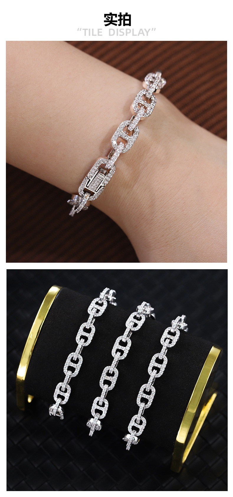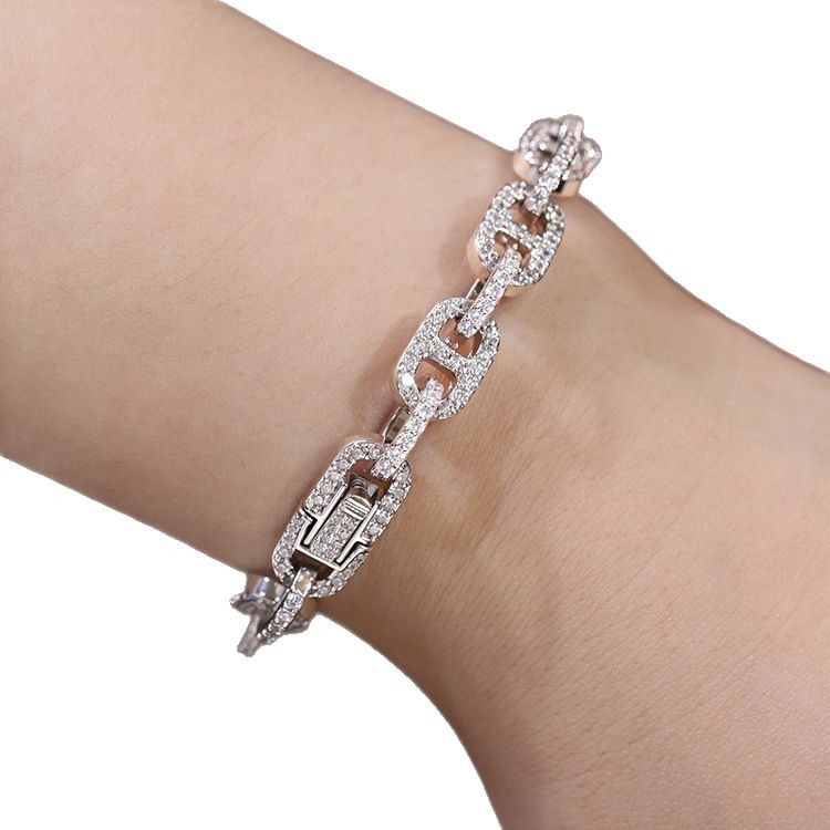 Хит продаж: трансграничный браслет из серебра S925 с муассанитом, кубинский браслет «свиной нос», легкая роскошь, высококачественные модные ювелирные украшения