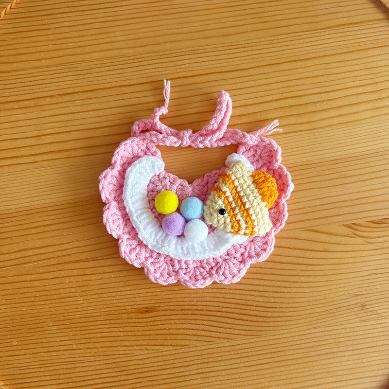 Вязаный красный бантик в виде клубники; Вязаные розовые цветы клубники; Оранжевый вязаный шарф; Вязаный шарф клубничного цвета; Вязаный шарф два маленьких цветочка; морковный вязаный шарф; Вязаный шарф подсолнух; вязаный шарф-тюльпан; Оранжево-зеленый вязаный шарф с цветочным принтом; Розовый плюшевый шарф в виде зайчика; Синий плюшевый шарф в форме пятиконечной звезды; Вязаная пчелка; Вязаный цветок подсолнуха; Розовый нагрудник с тропической рыбкой; Синий нагрудник с тропическими рыбками; Жёлтый нагрудник с тропической рыбкой; Розовый шарф с тропическими рыбками; Вязаный шарф из фиолетового кружева; Красные вязаные тюльпаны; Фиолетовые вязаные тюльпаны; Желтые вязаные тюльпаны; Синий вязаный тюльпан; Вязаная сумка Почакко; Вязаная сумка Помпомпурин; Морковный вязаный карман; Розовый вязаный объемный цветок; Красный вязаный объемный цветок; Фиолетовый вязаный объемный цветок; Зеленый вязаный объемный цветок; Синий вязаный объемный цветок; Трикотаж в стиле Chanel — большой бант; Трикотаж в стиле Chanel — клетчатая галстук-бабочка; Трикотаж в стиле Chanel — мини-бантик; Вязаный трикотаж в стиле Chanel - Камелия; Вязаный карман с застежкой M-образной формы; Снежно-белый бант; Снежная Белка Пом Пом; Вязаный шарф из розового кружева; Желтый кружевной вязаный шарф; Синий кружевной вязаный шарф; Синий шарф с тропическими рыбами; цветы; Жёлтая бабочка с цветочным узором; синяя морская звезда; Жёлтые морковные шарики; Розовые клубничные шарики; Зеленый галстук-бабочка с цветочным узором; розовый галстук-бабочка с цветком; Жёлтый галстук-бабочка с цветком; синий галстук-бабочка с цветком; Красный галстук-бабочка с цветочным узором; Фиолетовый галстук-бабочка с цветами