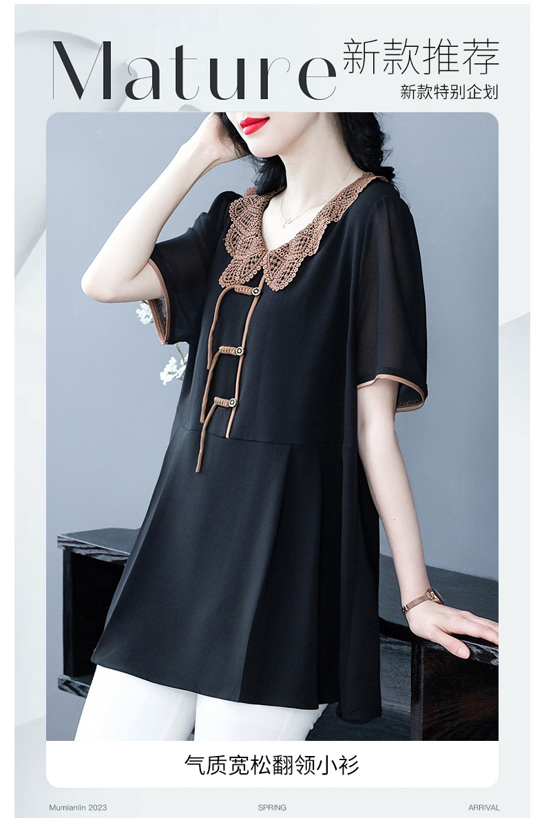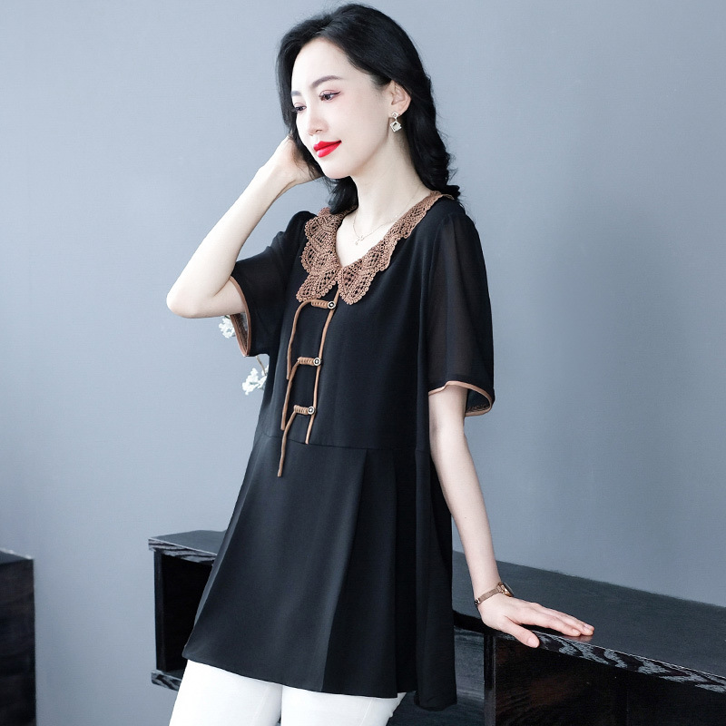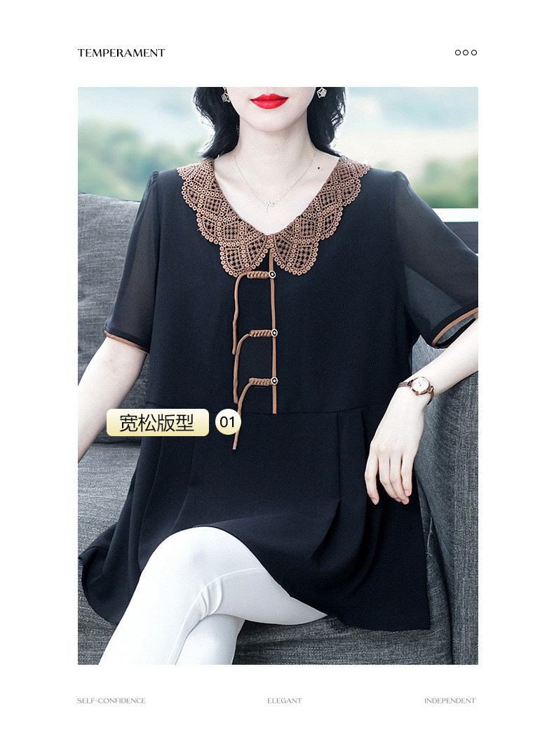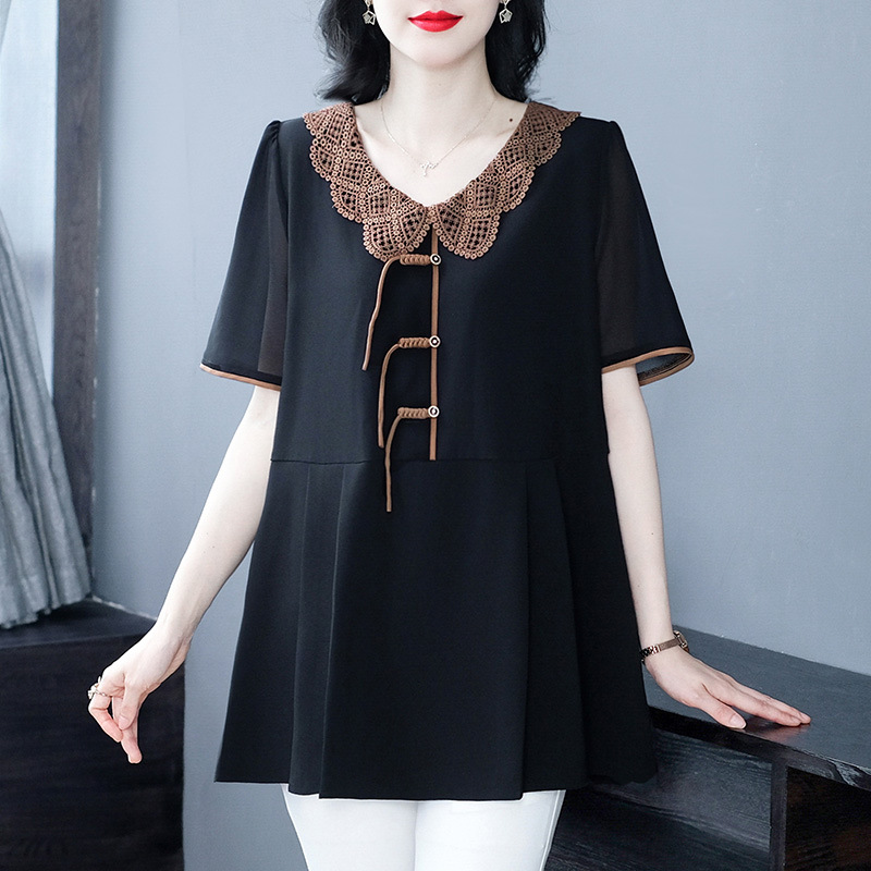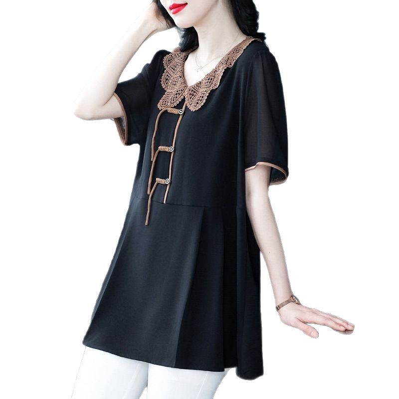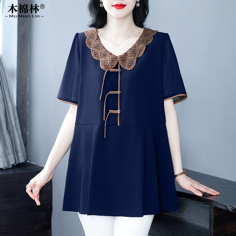 Летний новый высококлассный кружевной воротник свободный плюс большой размер с короткими рукавами