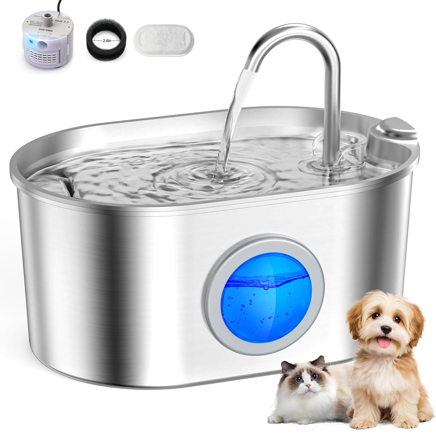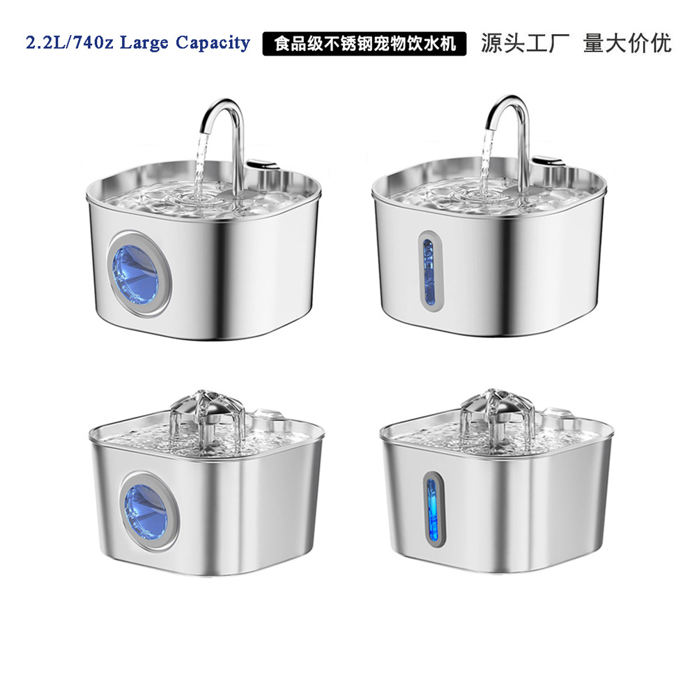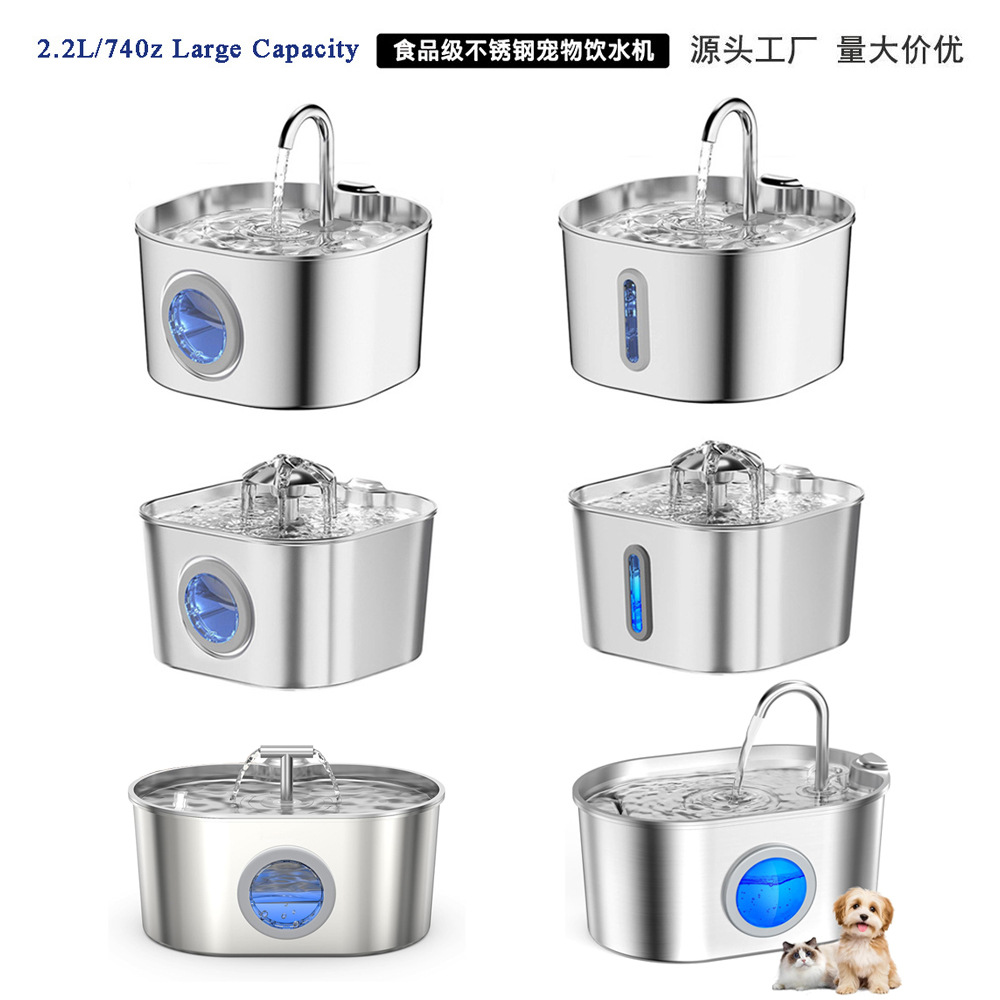 2,2-литровый диспенсер для воды для животных из нержавеющей стали, кросс-бордерный диспенсер для воды для кошек, фонтанчик для питья с текущей водой, популярный товар на Amazon