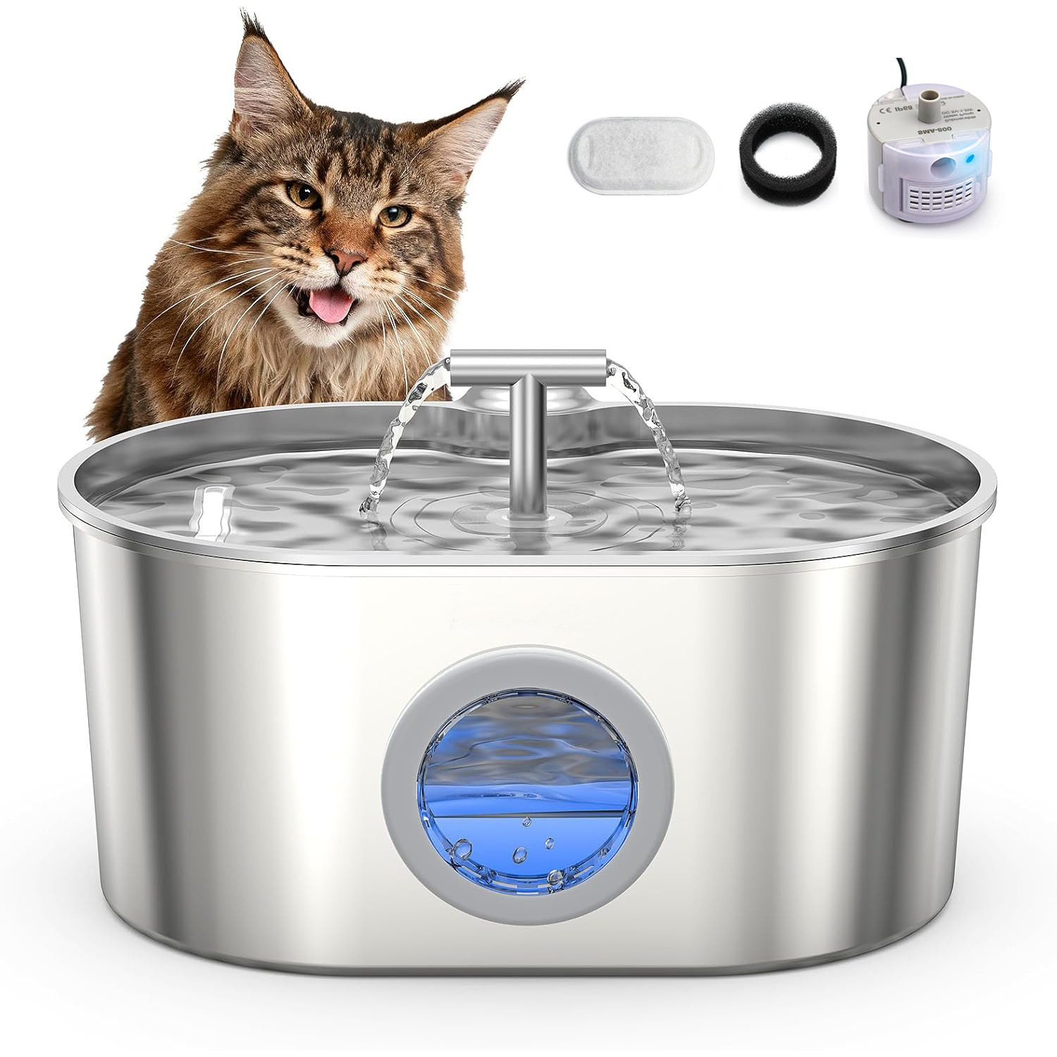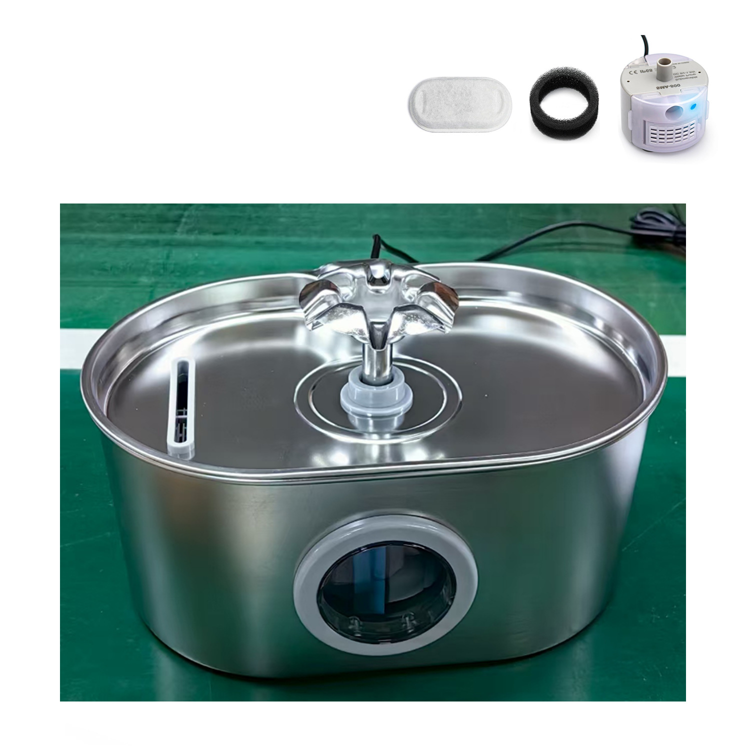 Диспенсер для воды для домашних животных, водяной насос, фильтрующий элемент, руководство, выпускная головка для воды, адаптер (опция)