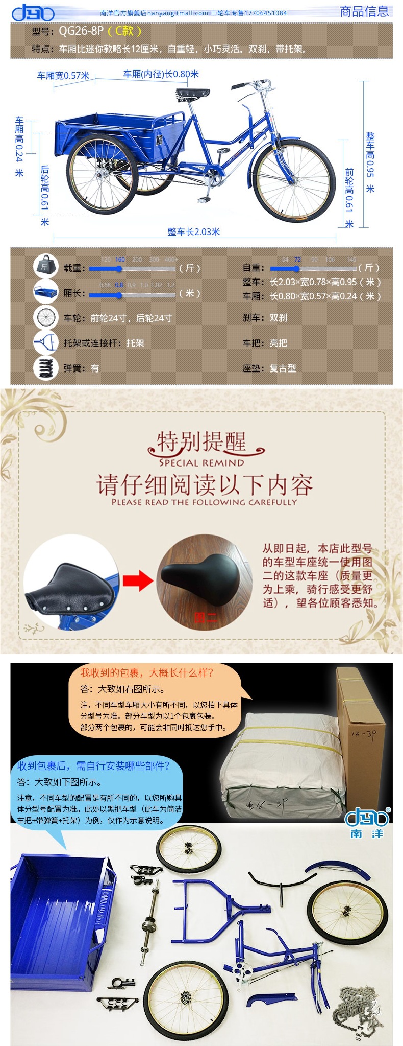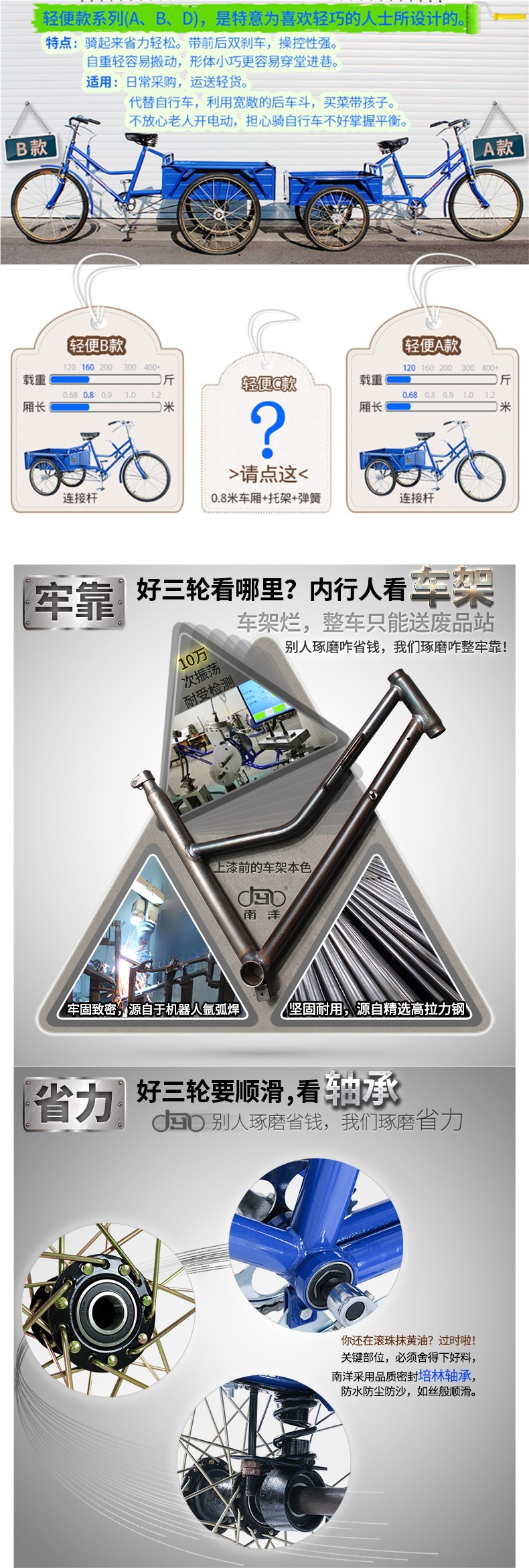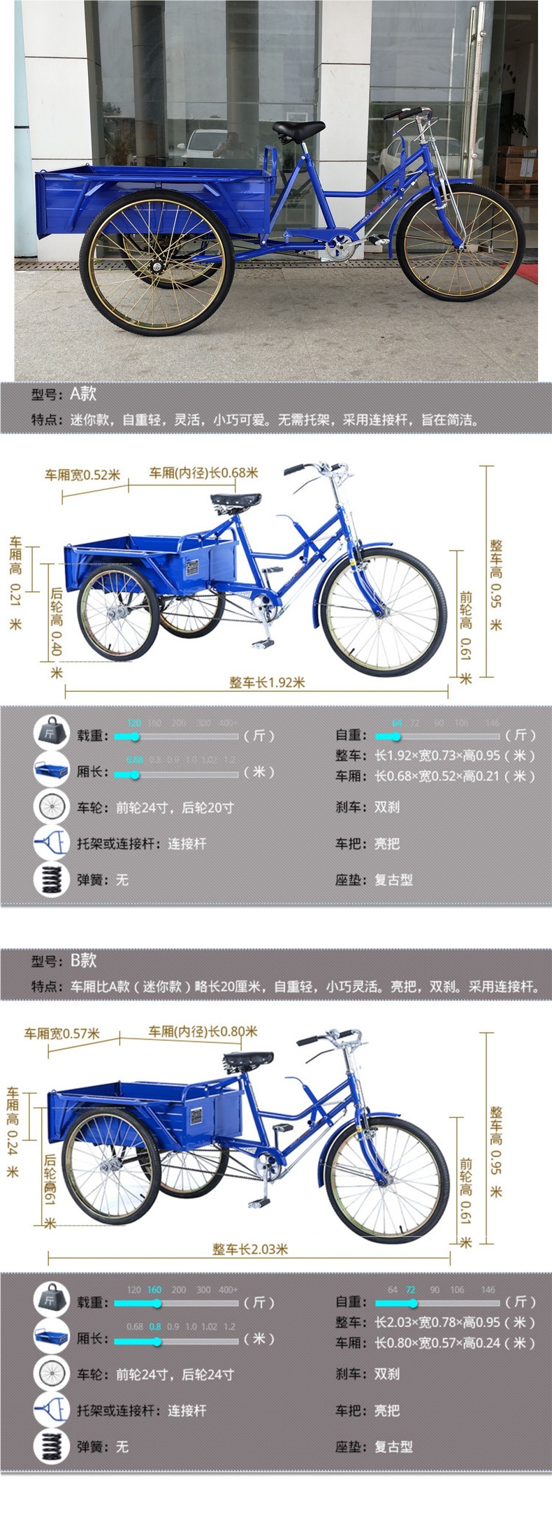 0,7 ~ 1m пассажирских мест, длинный грузовой велосипед с педалями в стиле пожилых людей, легкий и экономичный трехколесный велосипед для взрослых