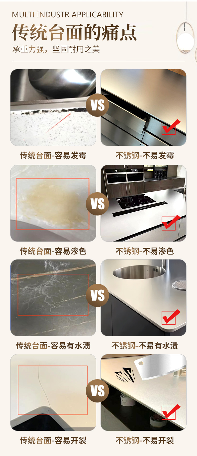 Твердая столешница из нержавеющей стали