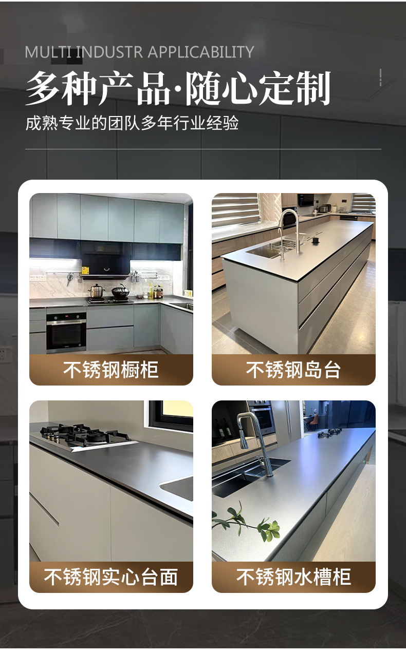 Кухонные шкафы из нержавеющей стали 304, встроенные шкафы, индивидуальный дизайн, переоборудование старых шкафов, толщина 5/6/8 мм, фабрика Фошань