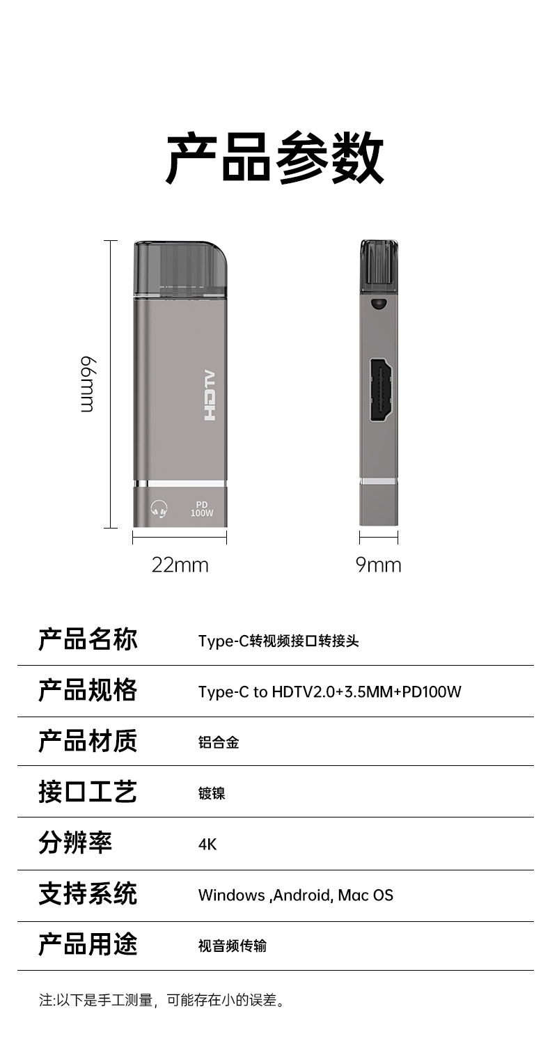 Type-c в hdmi переходник 4K60HZ HD-экран для мобильного телефона 100WPD зарядки 3.5 наушники