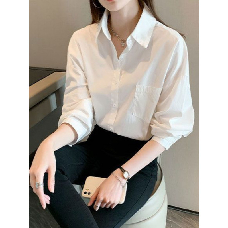 Белая рубашка футболка женская JK униформа 2025 весна и лето новая средняя длинная повседневная рубашка с длинными рукавами солнцезащитный топ тонкий