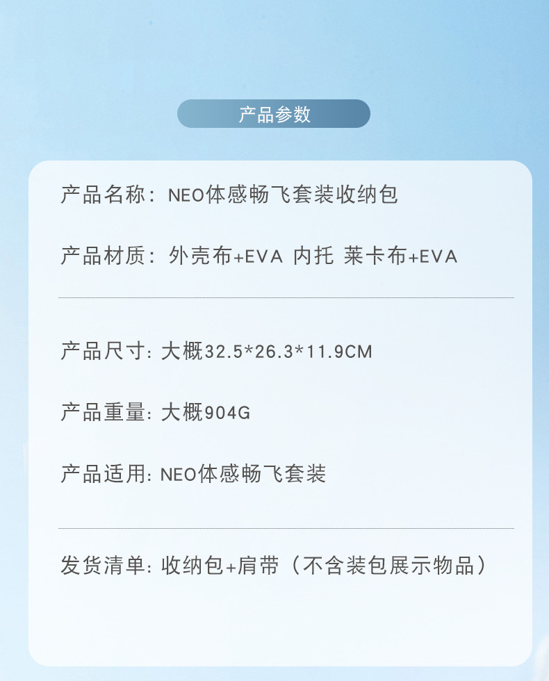 适用于:NEO体感畅飞套装收纳包(放不了遥控器)