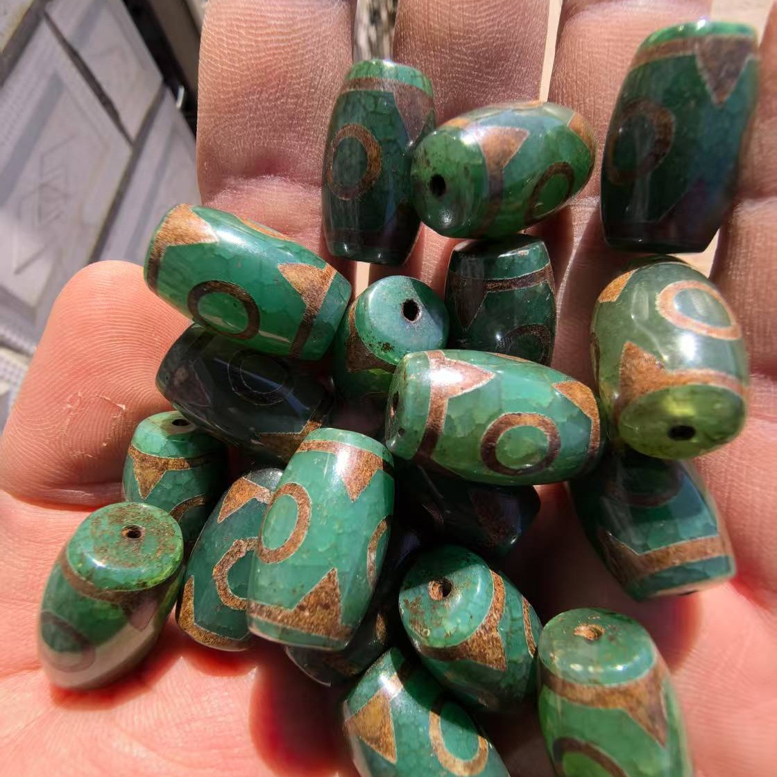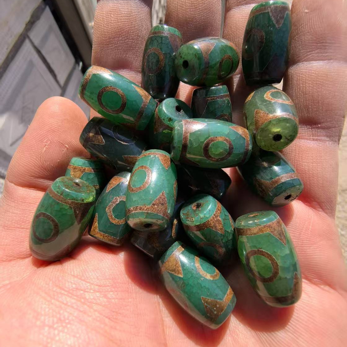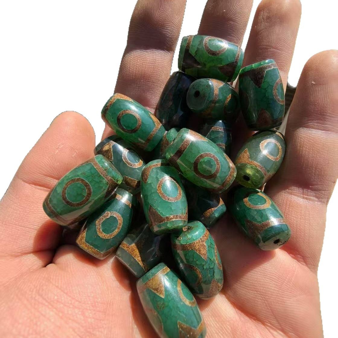 Производитель поставляет натуральный агат 15×22 мм в тибетском стиле, зеленую ячменную старую трехглазую бусину dzi, свободные аксессуары.
