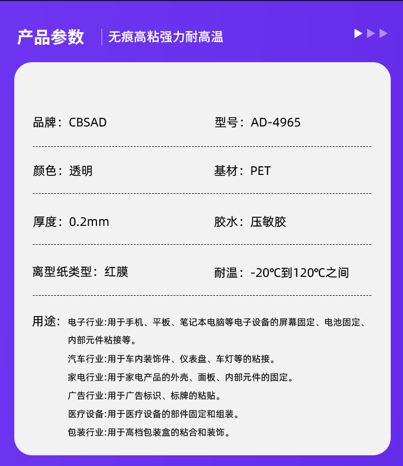 这款双面胶的运用非常广泛可订卷料,也可以按要求定制尺寸!
