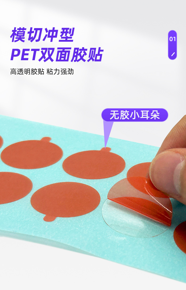 Двусторонняя лента из красной пленки ПЭТ, 0,2 мм, вырубная круглая, прозрачная, бесследная, высокая вязкость и термостойкость, двусторонняя лента для цифровых продуктов