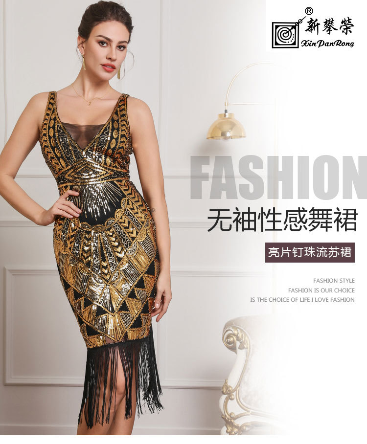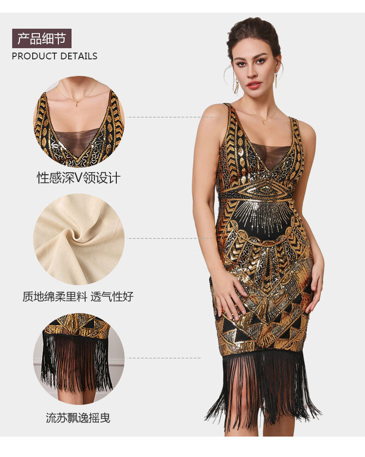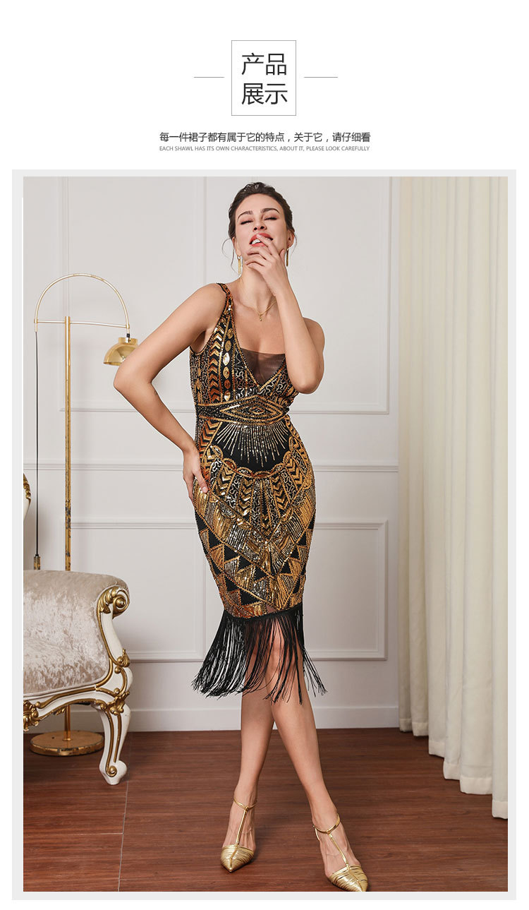 Новое платье Amazon в стиле Гэтсби 1920-х годов с бахромой, для вечеринок, ежегодных встреч и банкетов, длинное.