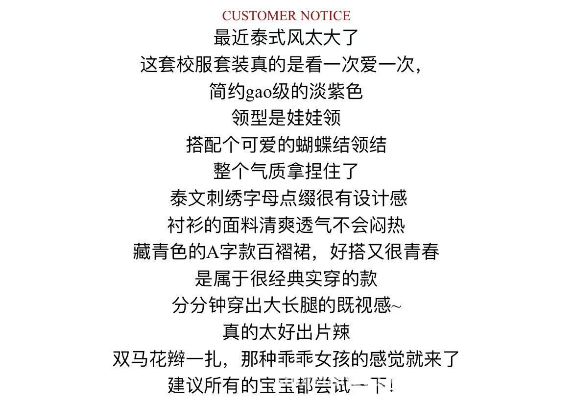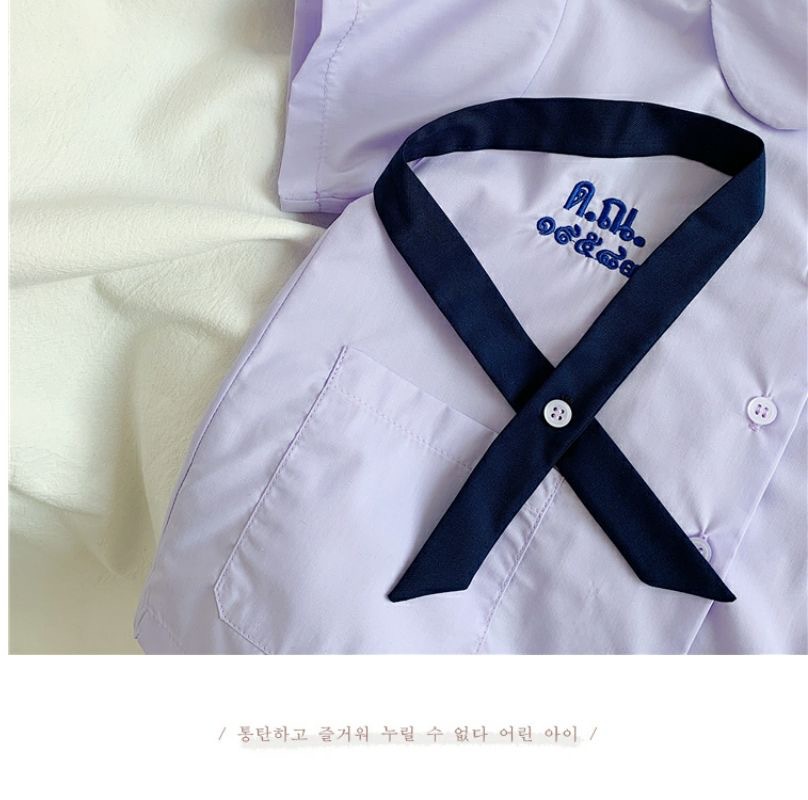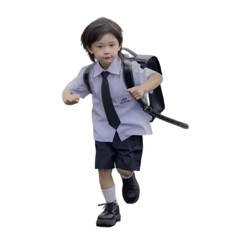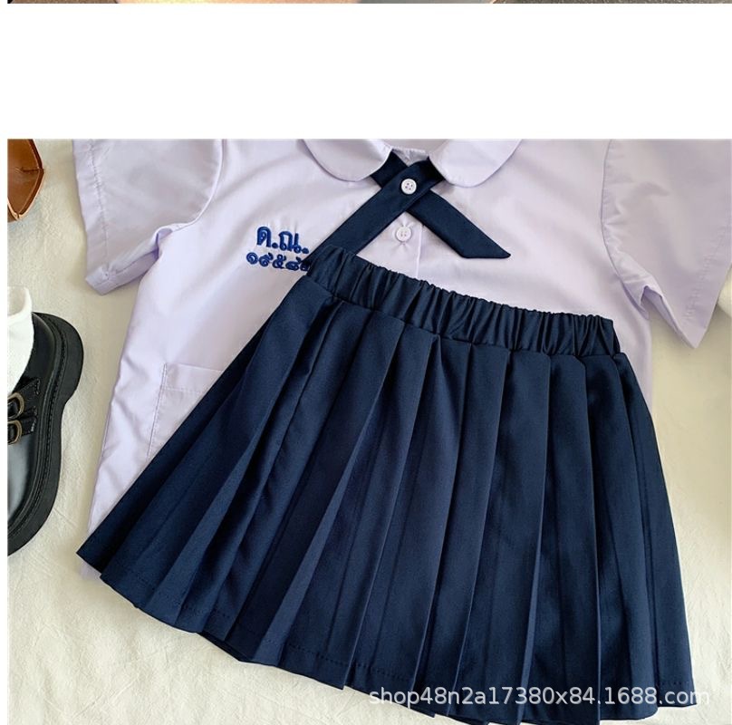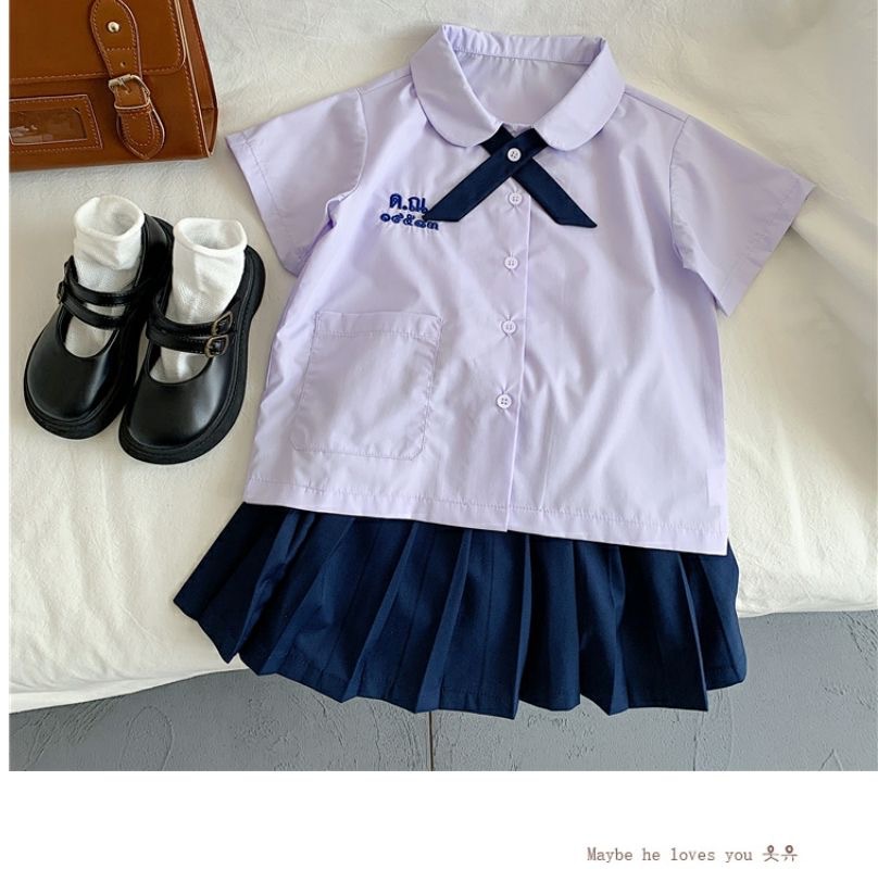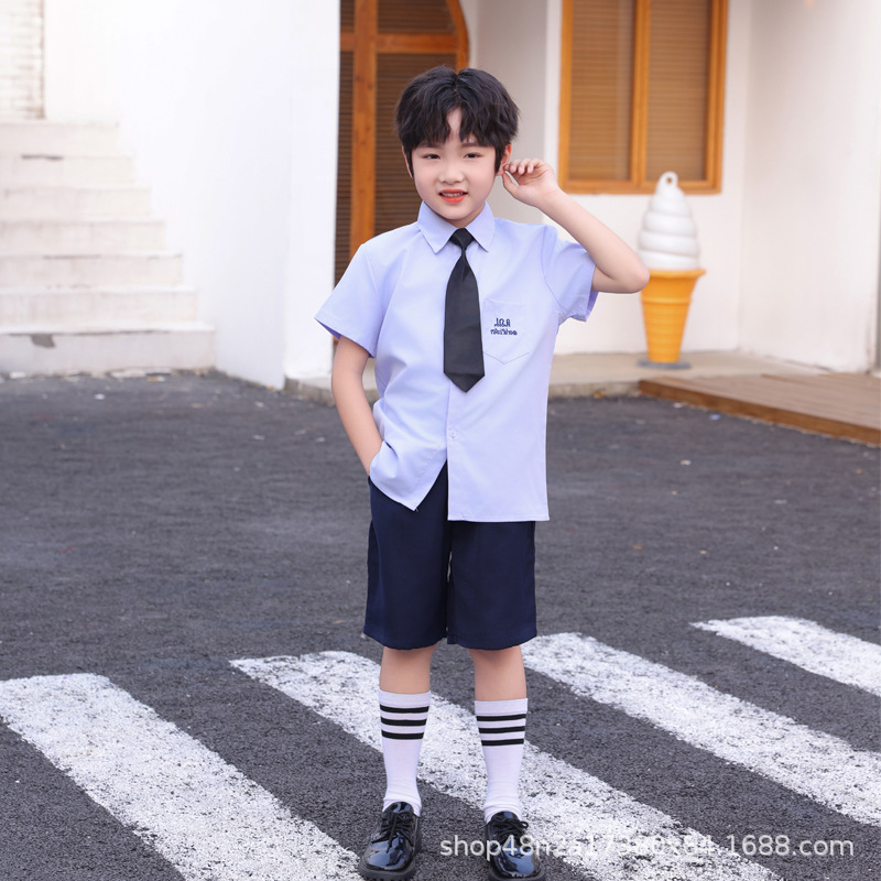 Тайская рубашка для девочек + крестик; Тайская рубашка для мальчика + галстук; Тайская рубашка для девочек + крест + темно-синяя плиссированная юбка; Тайская рубашка для мальчика + галстук + темно-синие шорты; Тайская рубашка для девочек + перекрестный узел + темно-синяя плиссированная юбка + носки до икры; Тайская рубашка для мальчика + галстук + темно-синие шорты + носки до середины икры