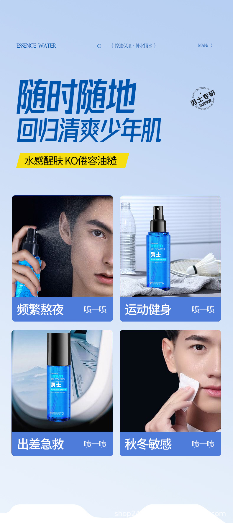 Мужской увлажняющий контроль масла освежающий спрей для сокращения пор Антиоксидантный увлажняющий увлажняющий освежающий портативный тонер для лица