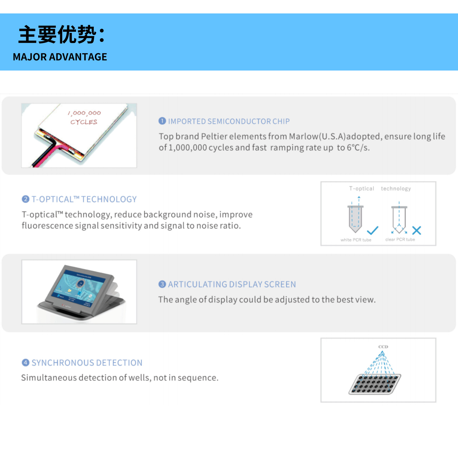 3.同一通道荧光同步检测,减少延时误差;