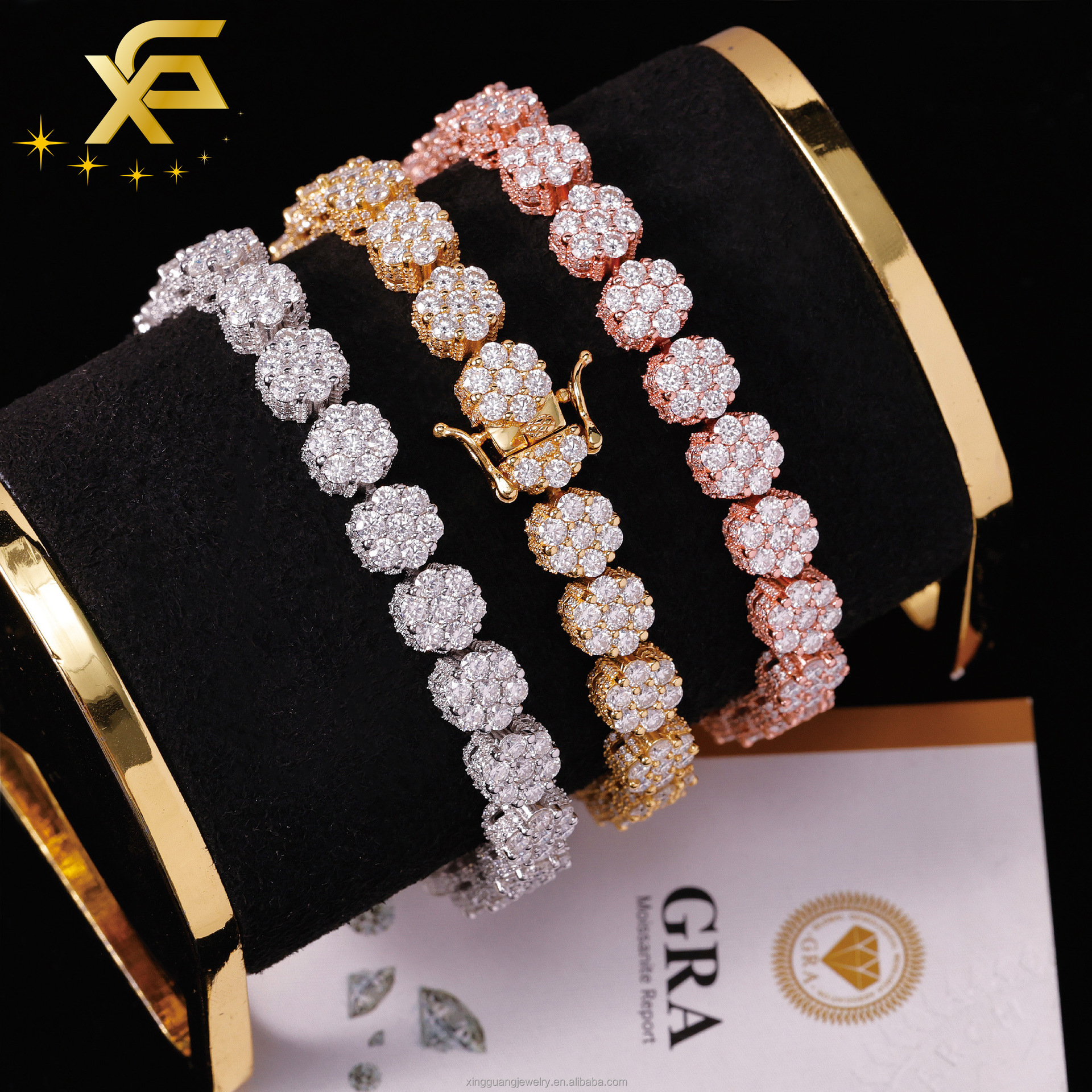 Универсальный браслет из стерлингового серебра S925 с полной инкрустацией мелкими цветами из муассанита, простое и изысканное нишевое украшение.