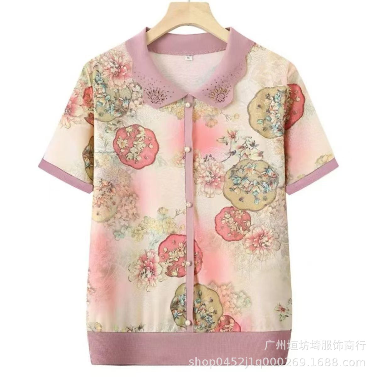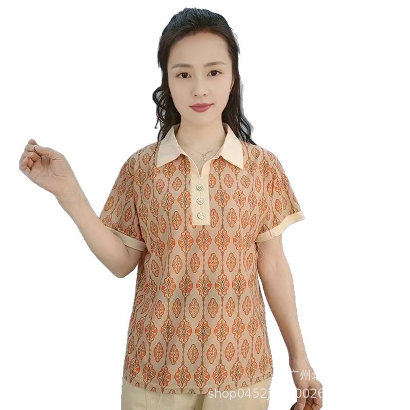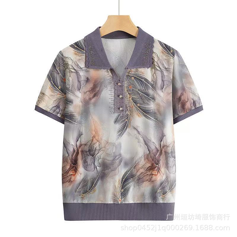 Модная футболка с коротким рукавом с лацканом для пожилых мам