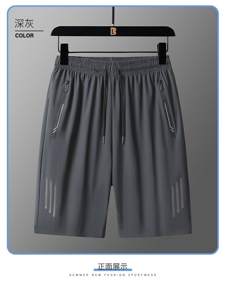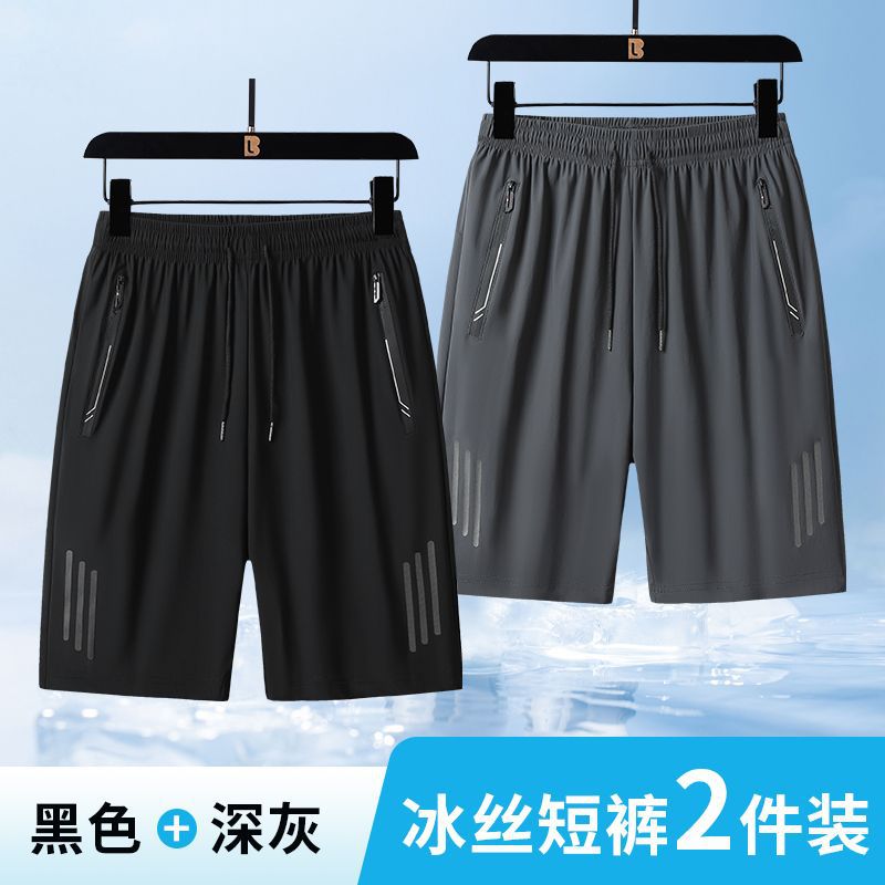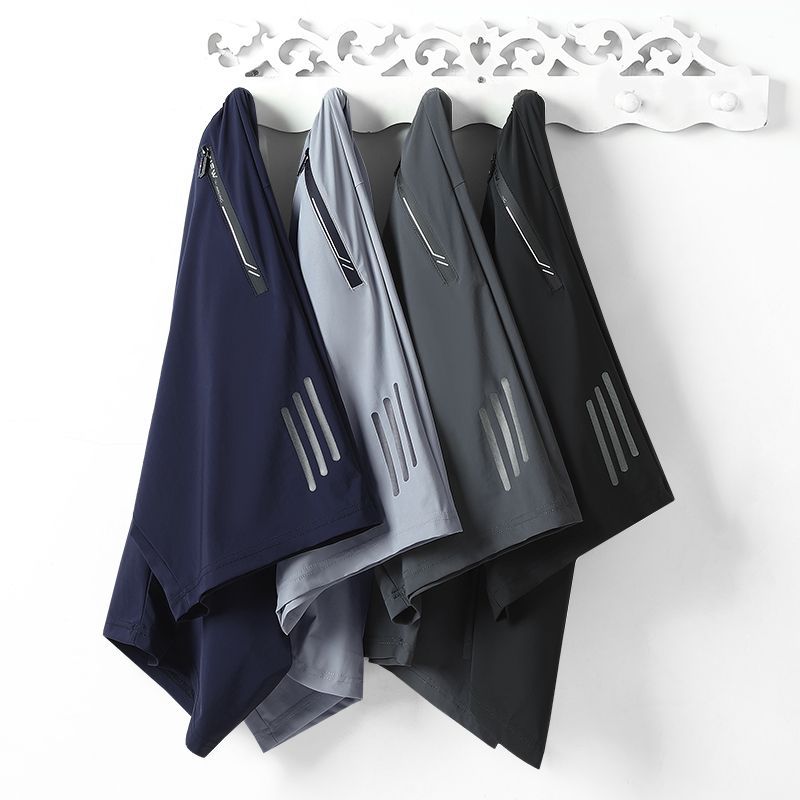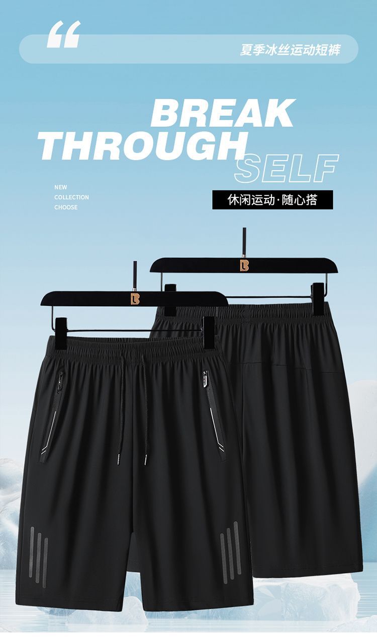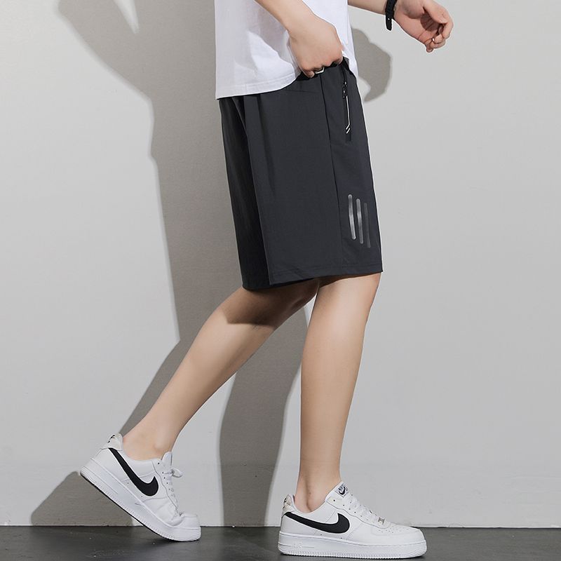 Мужские спортивные шорты для бега, пляжные шорты из быстросохнущей ледяной шелковистой ткани, средней длины, для кросс-граничной электронной коммерции, повседневный стиль.