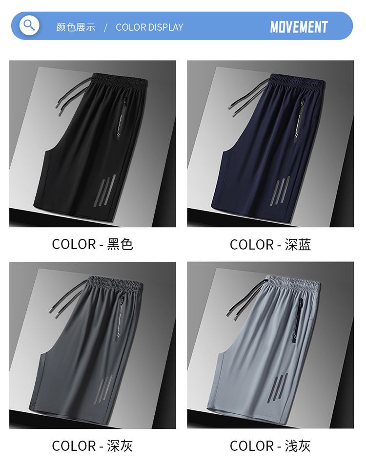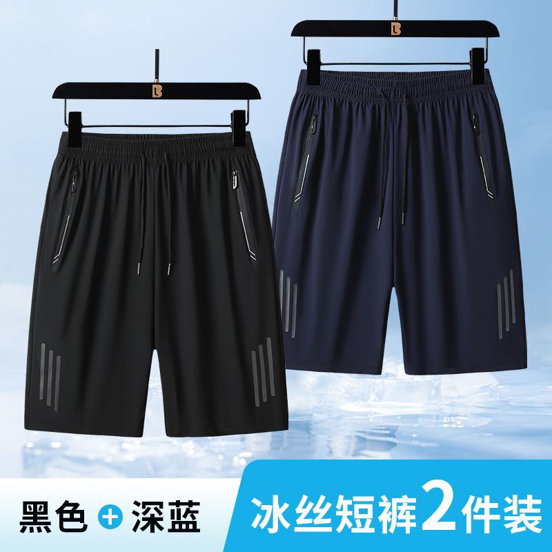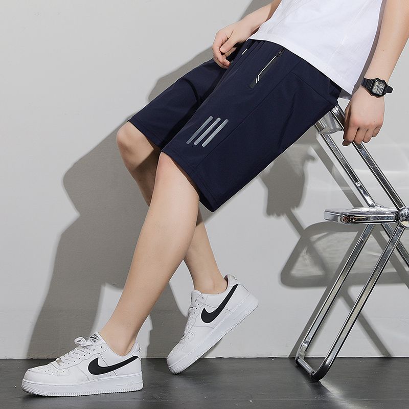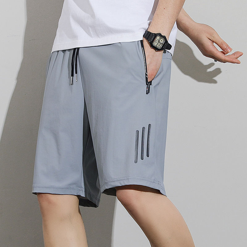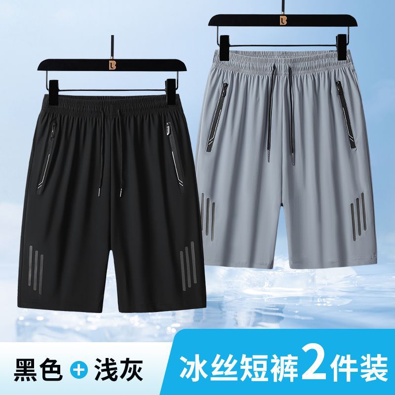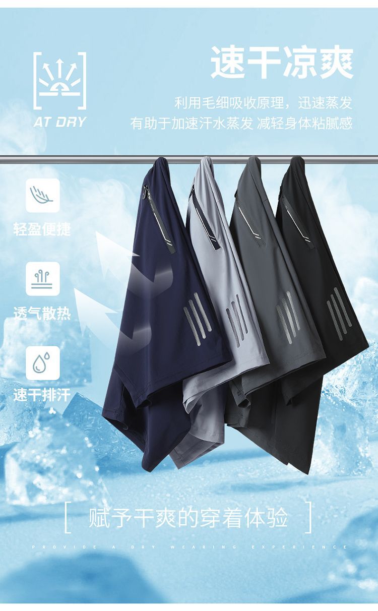 Мужские спортивные шорты для бега, пляжные шорты из быстросохнущей ледяной шелковистой ткани, средней длины, для кросс-граничной электронной коммерции, повседневный стиль.