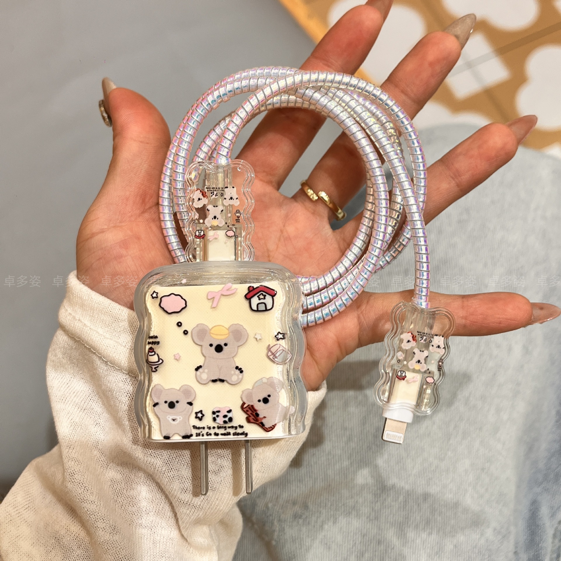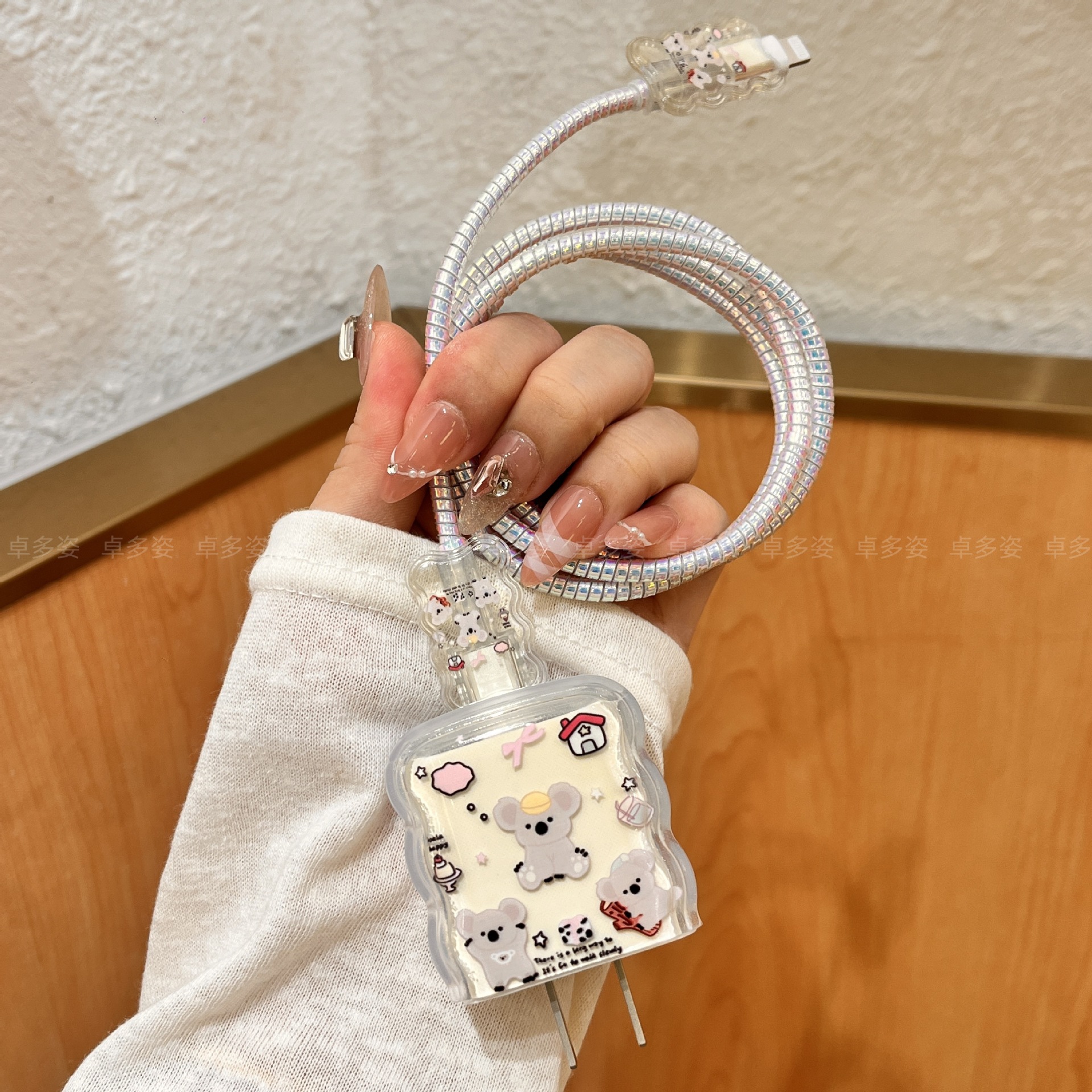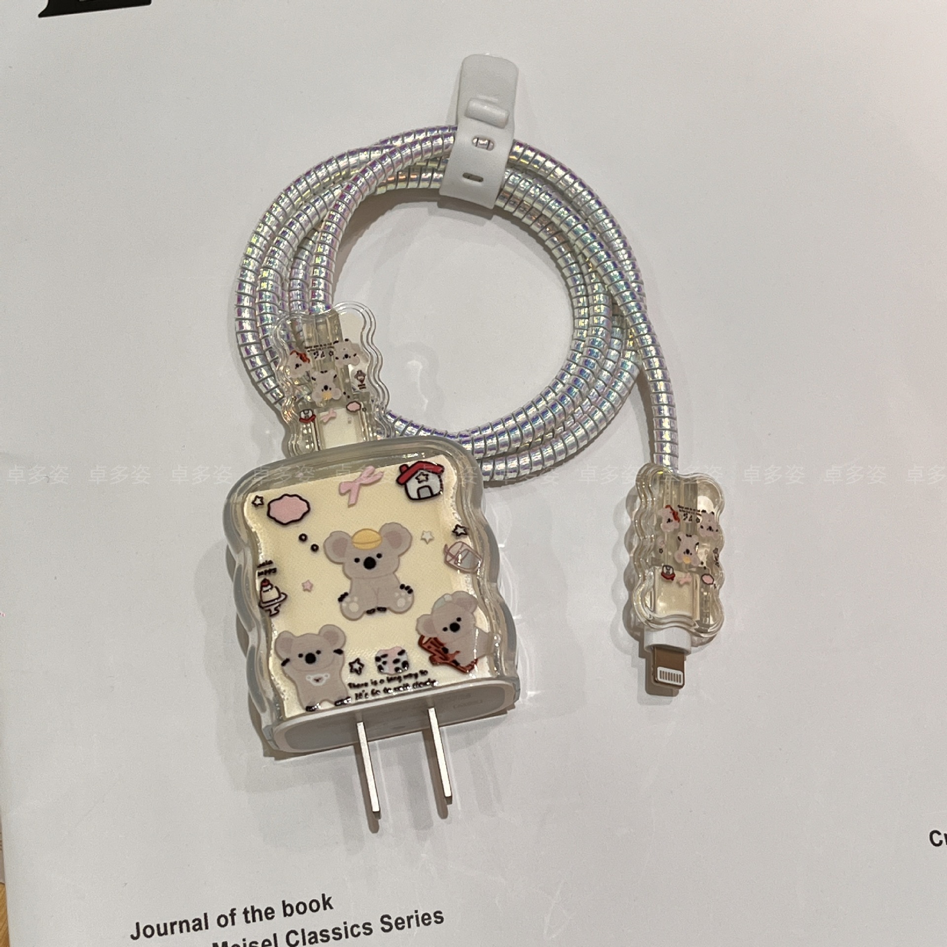 Защитный чехол для зарядного кабеля Apple 16 20 Вт с изображением мультяшной куклы-медведя гризли, кабель для зарядки, кабель с защитой от разрыва, устройство для защиты от укусов