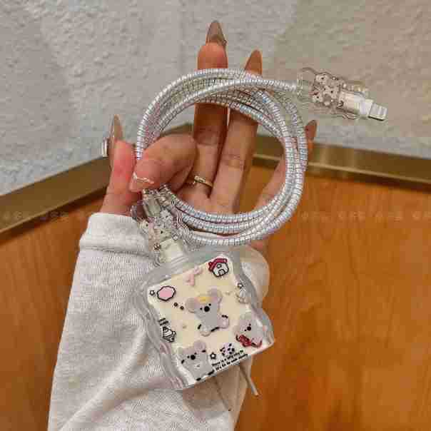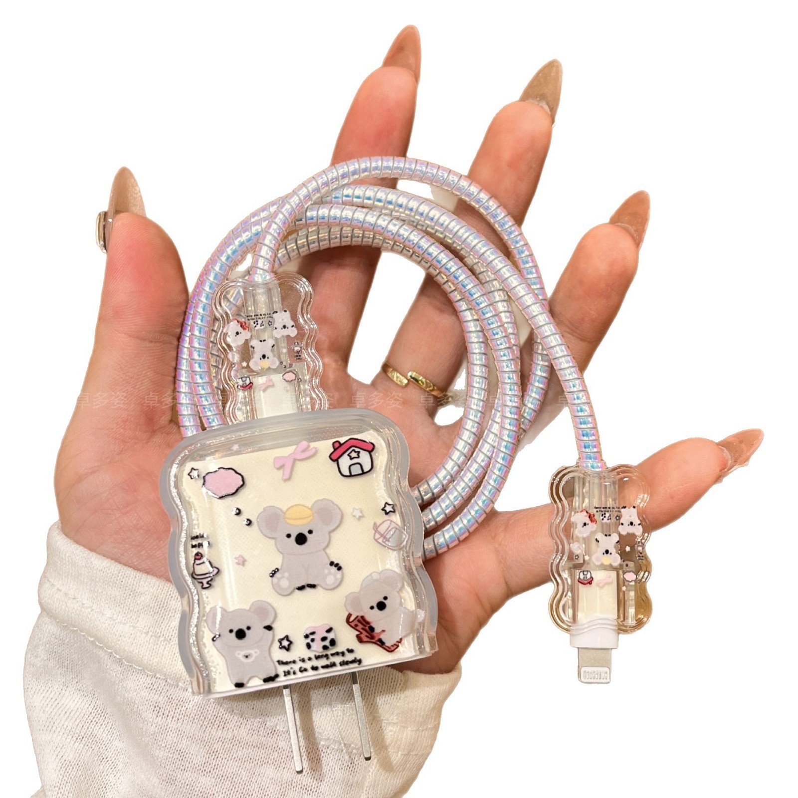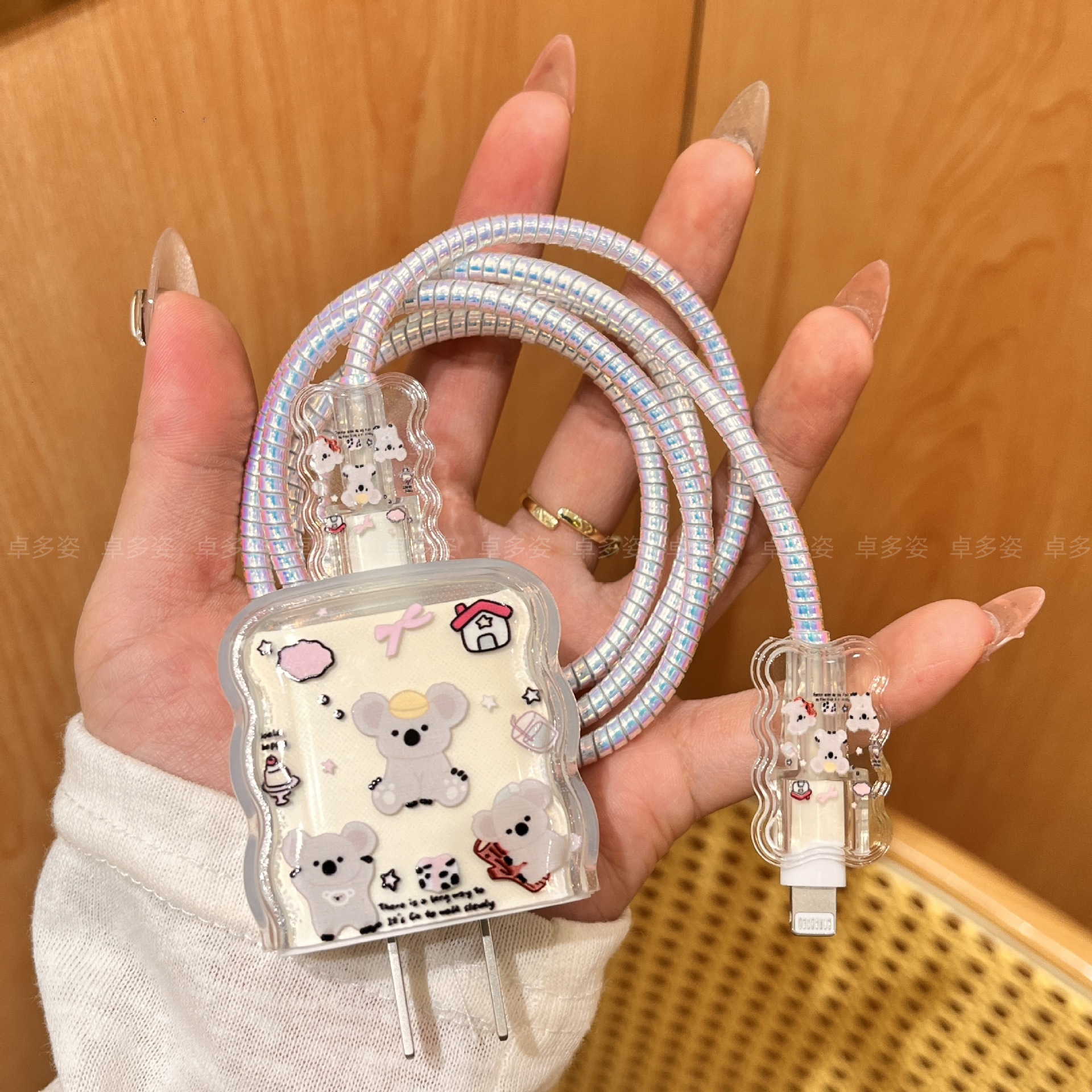 Защитный чехол для зарядного кабеля Apple 16 20 Вт с изображением мультяшной куклы-медведя гризли, кабель для зарядки, кабель с защитой от разрыва, устройство для защиты от укусов