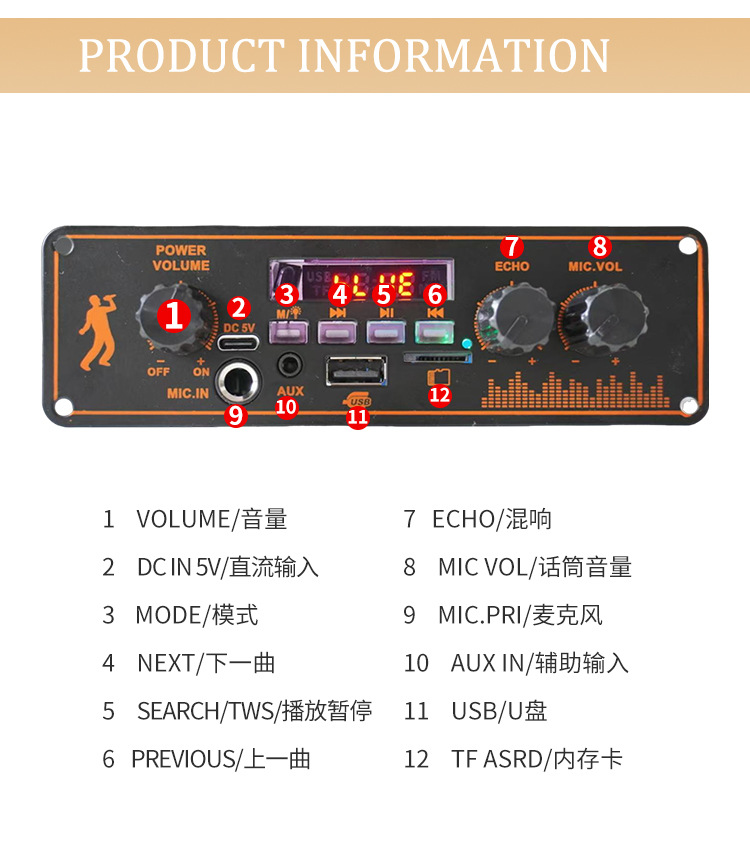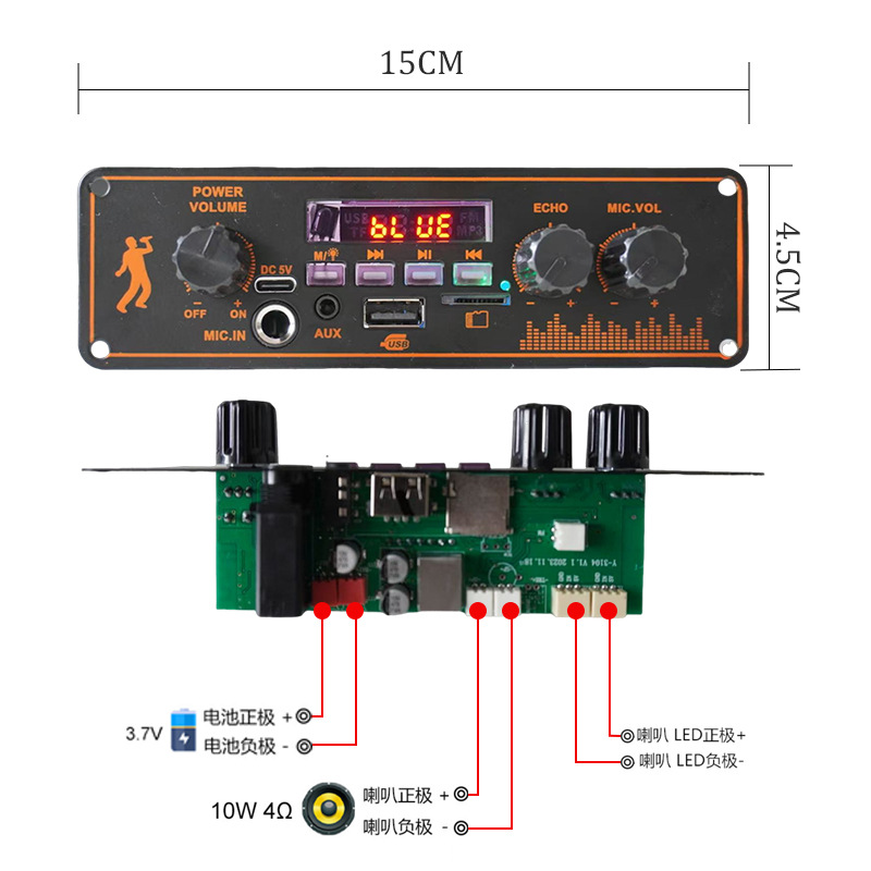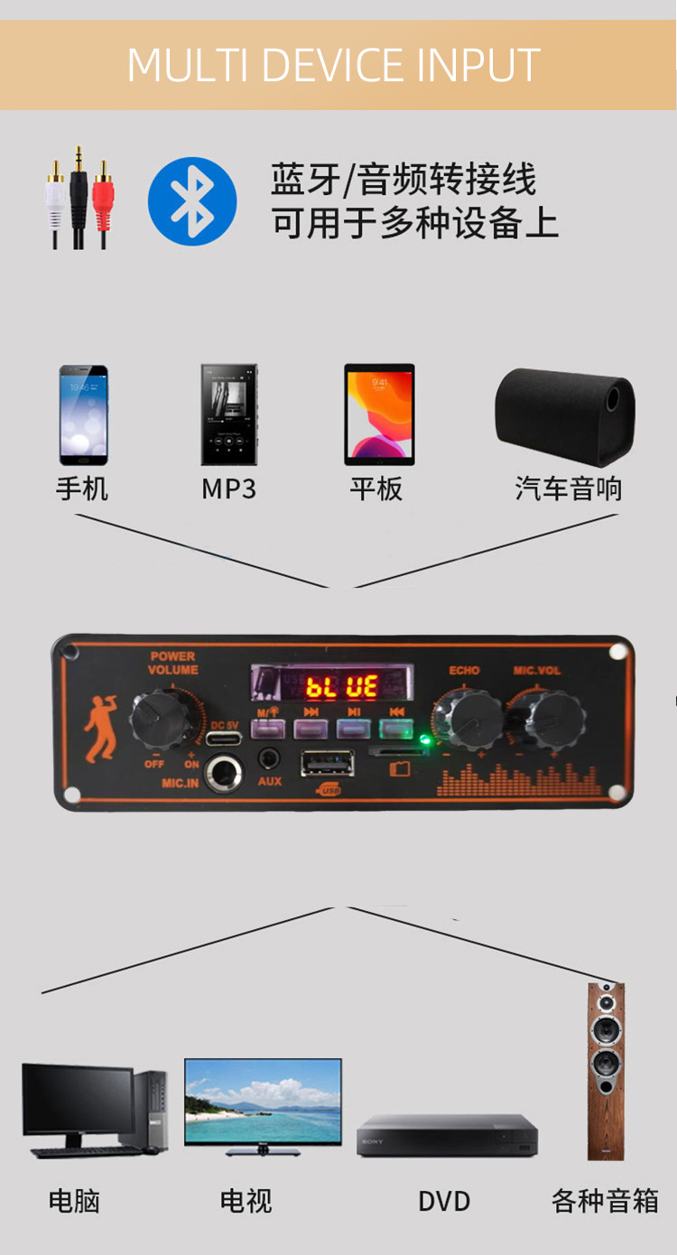 Заводская материнская плата, зарядка 3,7 В, беспроводной Bluetooth-динамик, подключаемый усилитель на грузовике, микрофон для квадратного танца, аудио