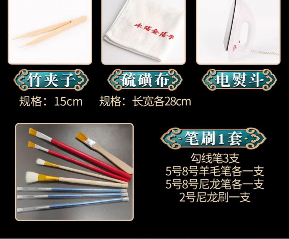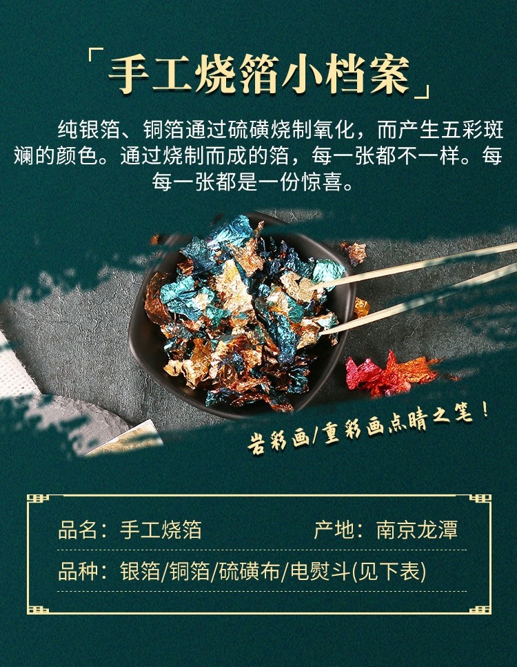 Специальный клей для росписи золотой фольгой + антиоксидантное защитное масло 100мл.; Специальный клей для росписи золотой фольгой + антиоксидантное защитное масло 50мл.; серная ткань; электрический утюг; 100 листов медной фольги толщиной 5 см.; 100 листов медной фольги толщиной 14 см.; 16cm 100 листов медной фольги; 100 листов медной фольги толщиной 16 см.; 10 листов серебряной фольги шириной 6 см.; 100 листов серебряной фольги толщиной 6 см.; 10 листов серебряной фольги шириной 11 см.; 100 листов серебряной фольги шириной 11 см.; Готовая обожженная фольга — 5 штук позднеосеннего румянца.; Готовая обожженная фольга - 5 штук заката заката; Готовая обожженная фольга - 2 кусочка малахита.; 1 бамбуковый зажим длиной 15 см.; 1 флакон клея по 100 мл.; Универсальное антиоксидантное защитное масло 100мл.; Масляное защитное масло 100мл.; Набор кистей; Закатное послесвечение-2г; Пылающая летняя сладость-2г; Циншань Рудай-2г; Оставшийся осенний платан (2 г); Закат Гуйхуан-2г; Поздняя осень Руж-2г; Готовый продукт с 12 сетками из обожженной фольги (случайный цвет); 4 г измельченной медной фольги (фольгу можно сжечь); 6 г сломанной медной фольги (фольгу можно сжечь); 4 г измельченной медной фольги (фольгу можно сжечь); 6 г измельченной медной фольги (фольгу можно сжечь); Специальный клей для росписи золотой фольгой 100мл.; Специальное антиоксидантное защитное масло для росписи золотой фольгой 100мл.; Специальный клей для росписи золотой фольгой 50мл.; Специальное антиоксидантное защитное масло для росписи золотой фольгой 50мл.