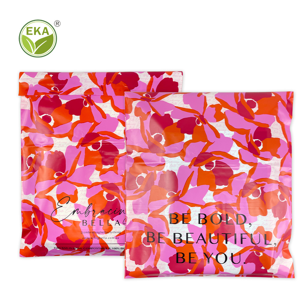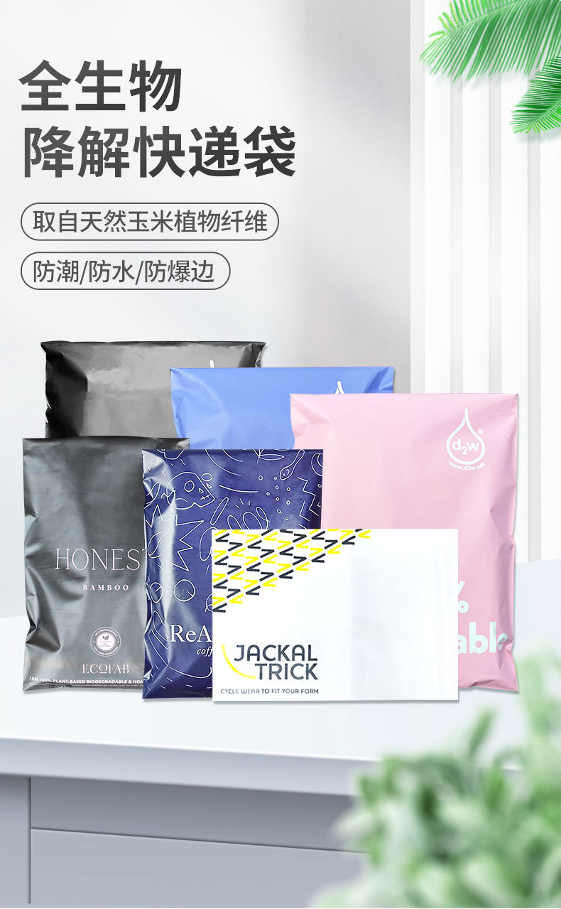 Биоразлагаемый пакет для экспресс-доставки с индивидуальной цветной печатью, биоразлагаемый пакет для упаковки одежды из электронной коммерции, самоклеящийся пакет из PLA