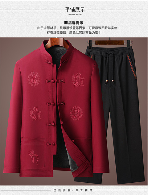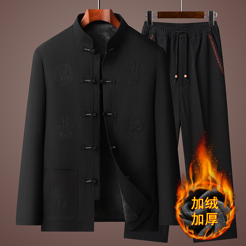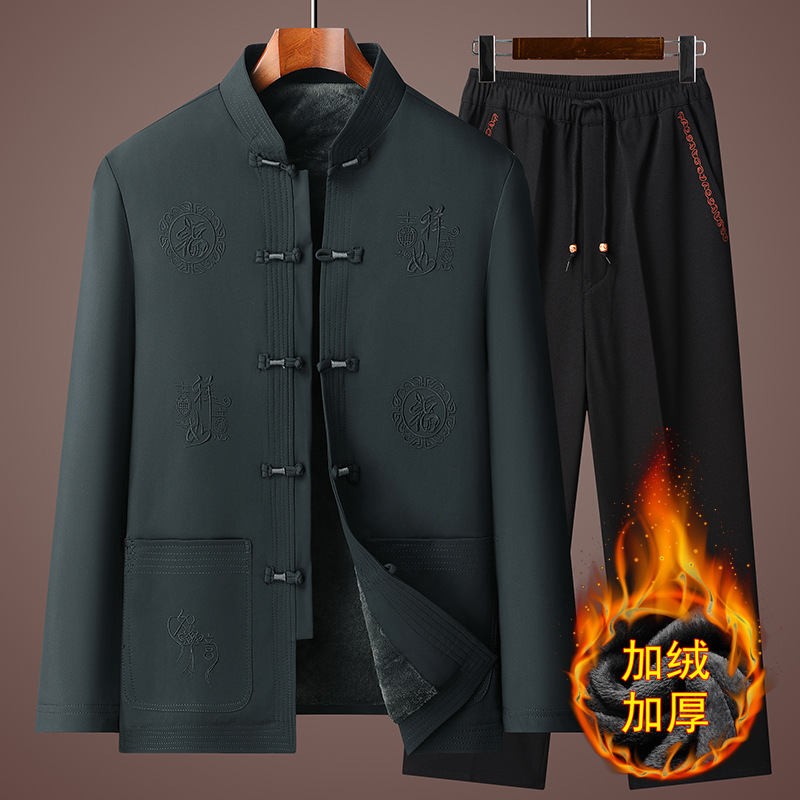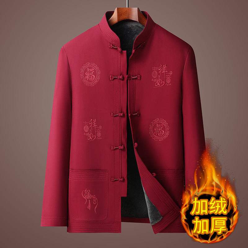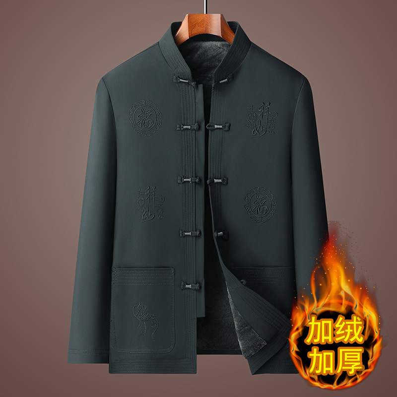 Мужская куртка в стиле Тан с флисовой подкладкой, утепленное хлопковое пальто для мужчин среднего и пожилого возраста, хлопковая куртка на день рождения, новый китайский стиль, этнический стиль, китайский стиль.