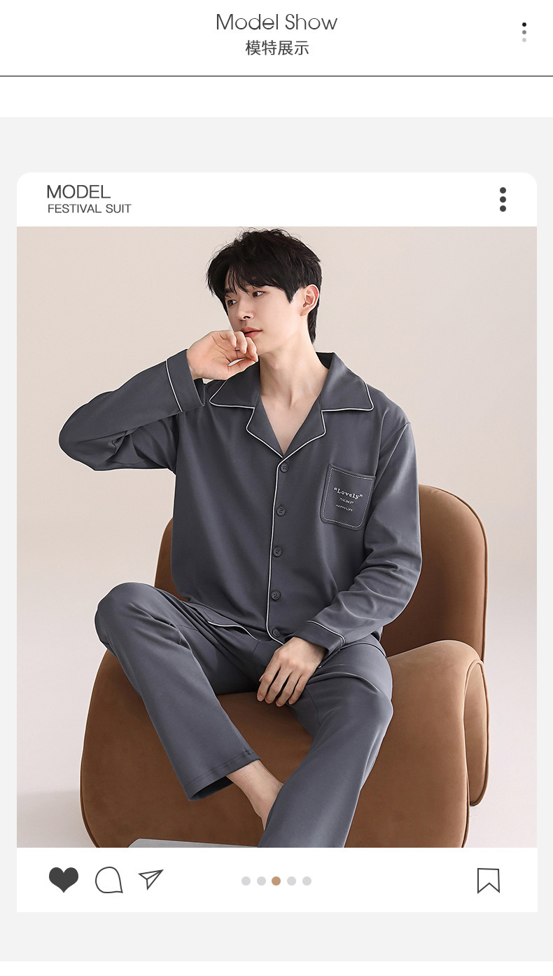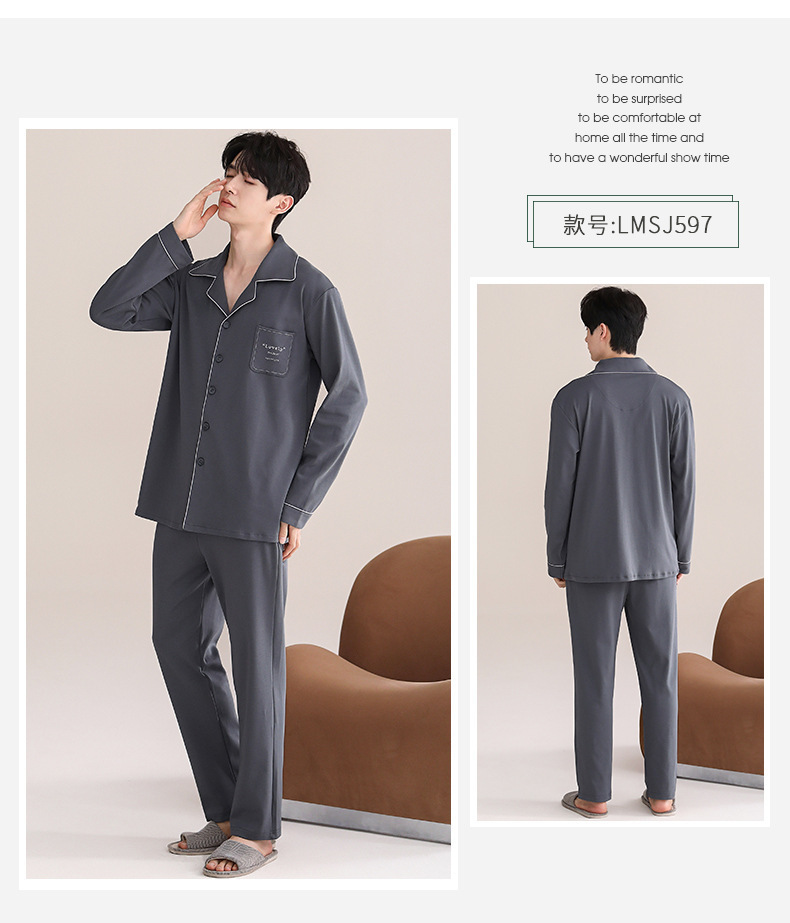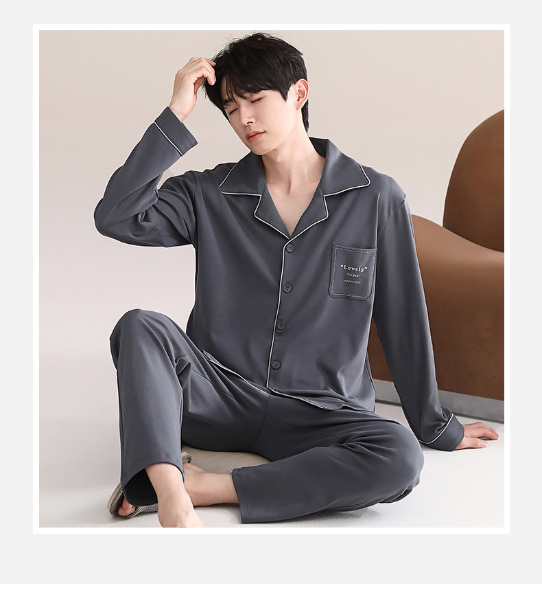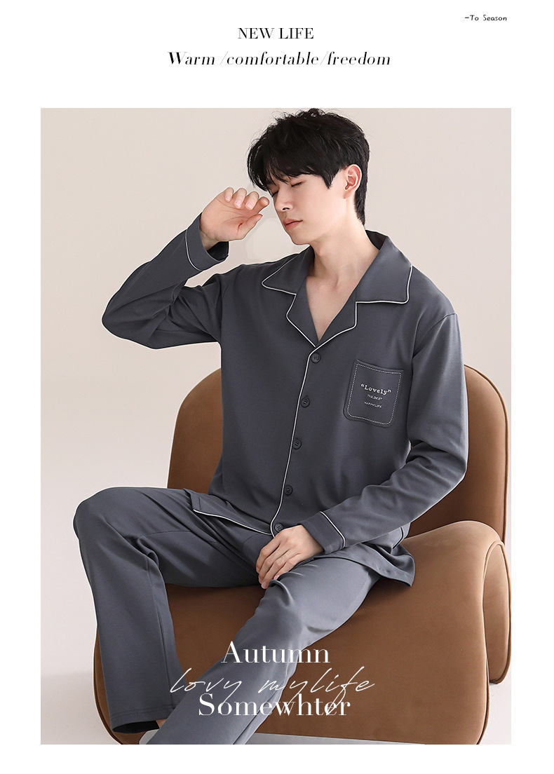 Пижамы для мужчин, весенне-осенняя хлопковая домашняя одежда с длинными рукавами, мужские осенние тонкие повседневные костюмы для подростков для ношения на улице.