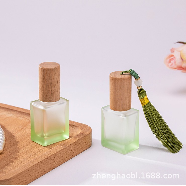 Новый стиль кисточки 10 мл красочная парфюмерная бутылка Портативный бук деревянная крышка подвеска шариковая стеклянная бутылка матовая бутылка