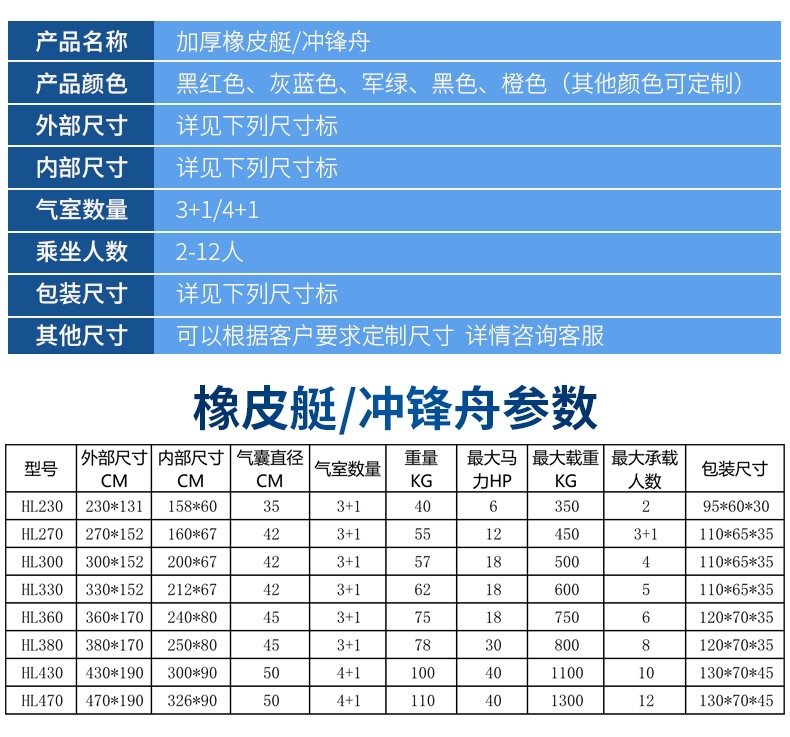 | 规格 | 2.3米橡皮艇/冲锋舟,2.7米橡皮艇/冲锋舟,3米橡皮艇/冲锋舟,3.3米橡皮艇/冲锋舟,3.6米橡皮艇/冲锋舟,3.8米橡皮艇/冲锋舟,4.3米橡皮艇/冲锋舟,4.7米橡皮艇/冲锋舟,5.2米橡皮艇/冲锋舟,6架舷外飞机,12架舷外飞机,25架舷外飞机,18架,30个舷外发动机,40个舷外发动机,55个舷外发动机,60个舷外发动机,单橡皮艇/冲锋艇,单橡皮艇/冲锋艇 |
