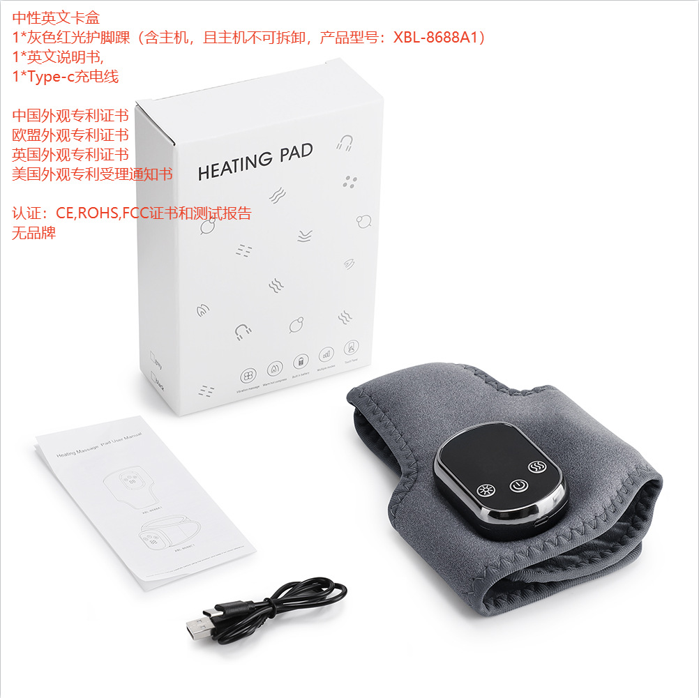 包装清单:中性英文飞机盒,1*灰色护脚踝(含主机,且主机不可拆卸),1*英文说明书,,1*Type-c充电线
