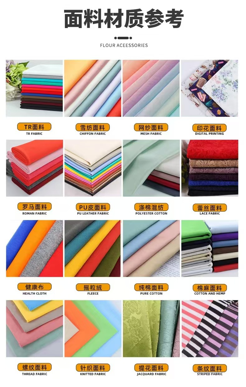чистый хлопок; вишер; Химическое волокно; шерсть; полиэстер; шифон; искусственная кожа; хлопок; Акриловое волокно; бамбуковое волокно; спандекс; модальный; Весь хлопок; органза; шелк; бархат; Другие ткани; шерсть; конопля; хлопковый деним; коралловый флис; Имитация ткани с эффектом памяти; Эластичный хлопок; трикотаж из хлопка; смесь хлопка; шерстяной материал; Льняная смесь; Смеси химических волокон; Другая смешанная джинсовая ткань