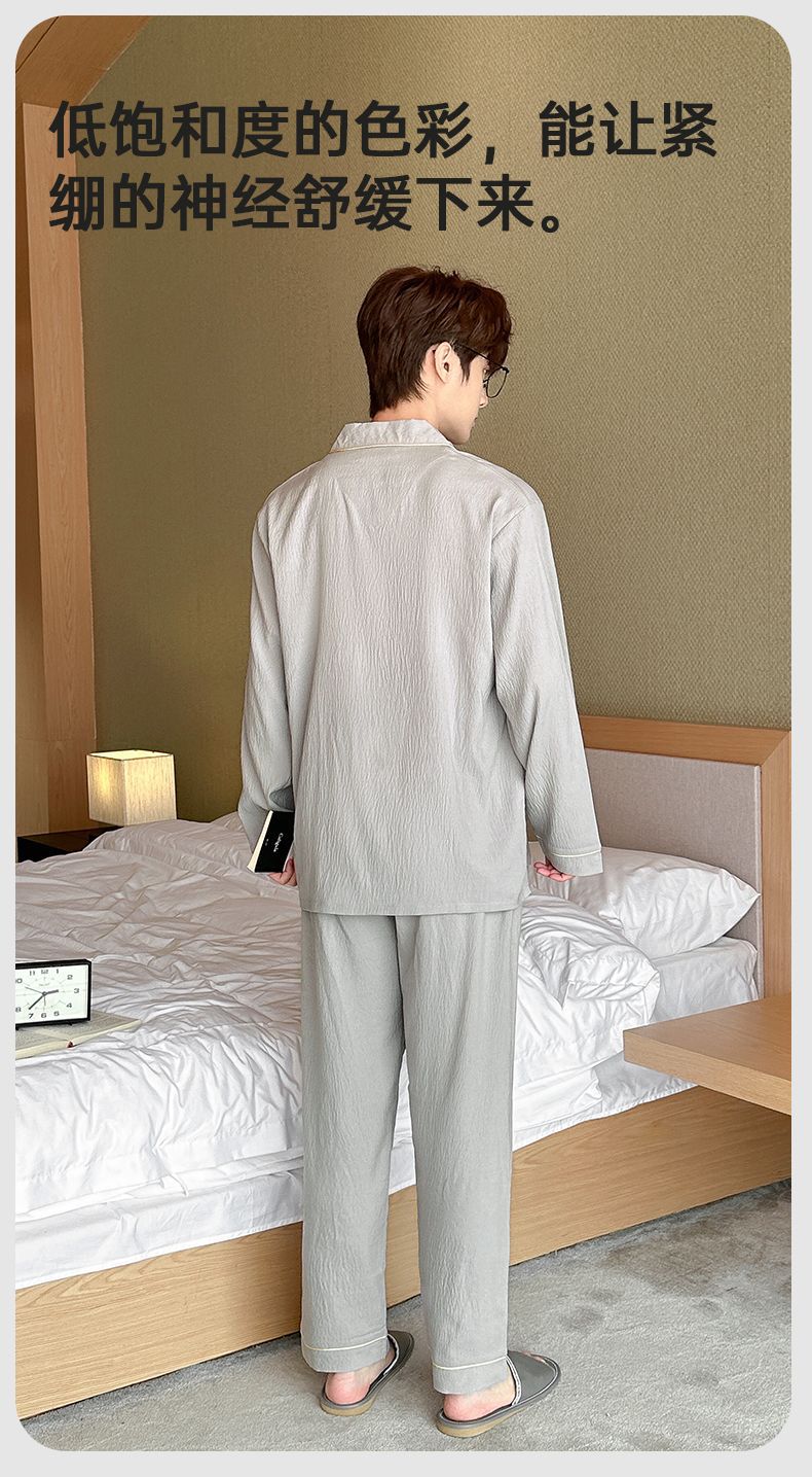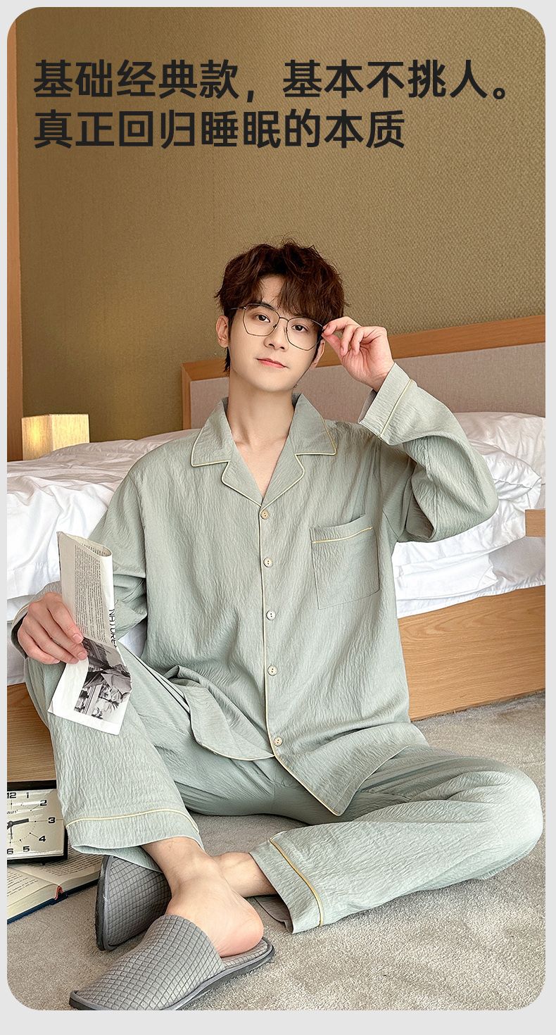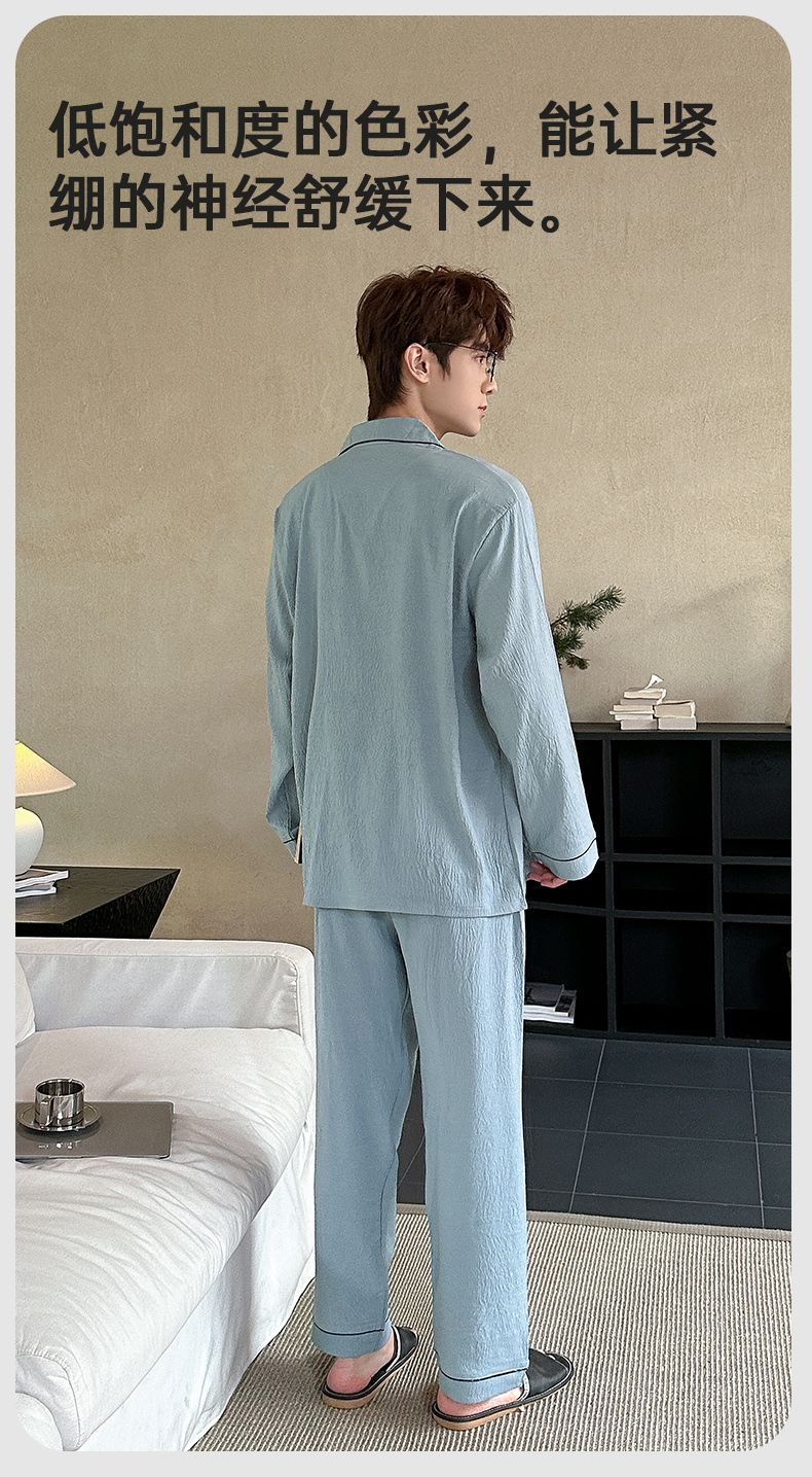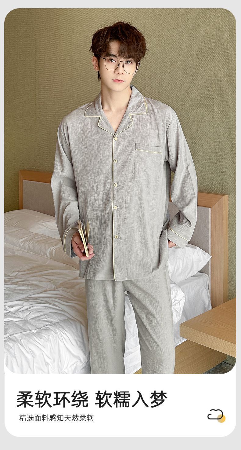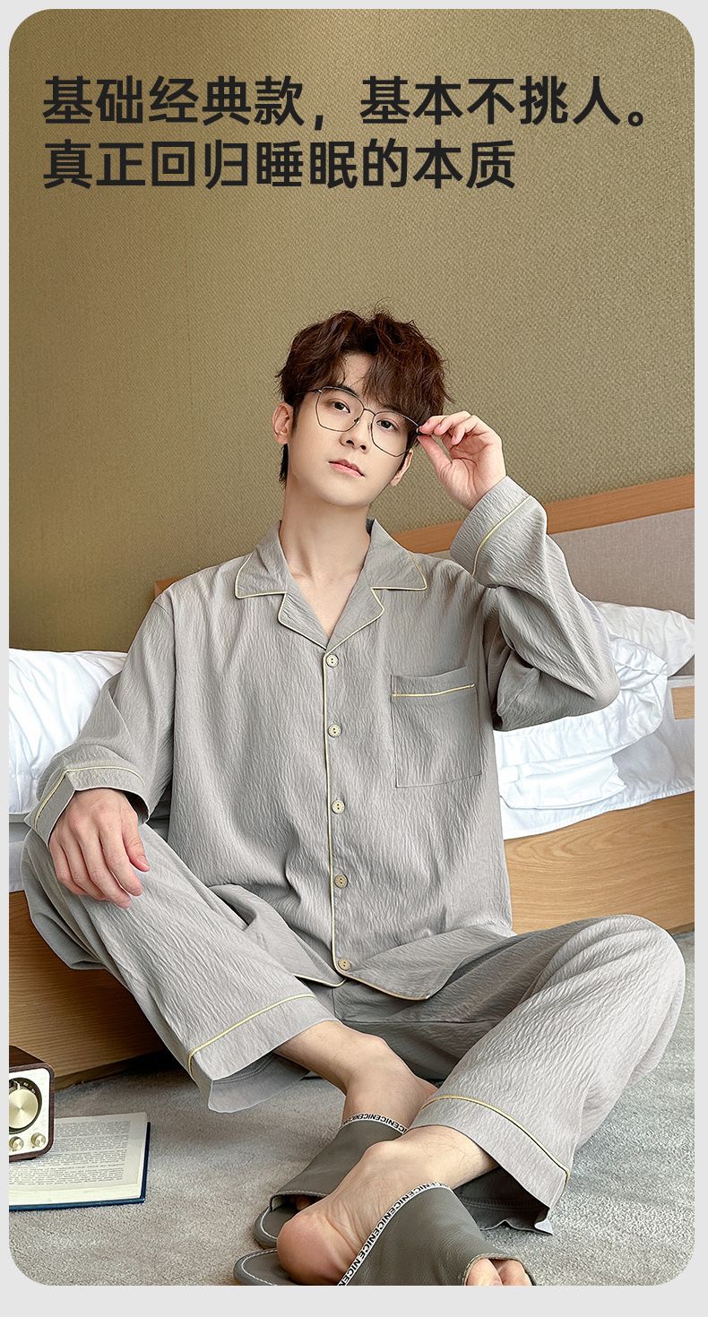 Мужские хлопковые брюки с длинными рукавами, пижамы из двух предметов, весенне-осенний простой однотонный кардиган с лацканами, можно носить вне домашней одежды