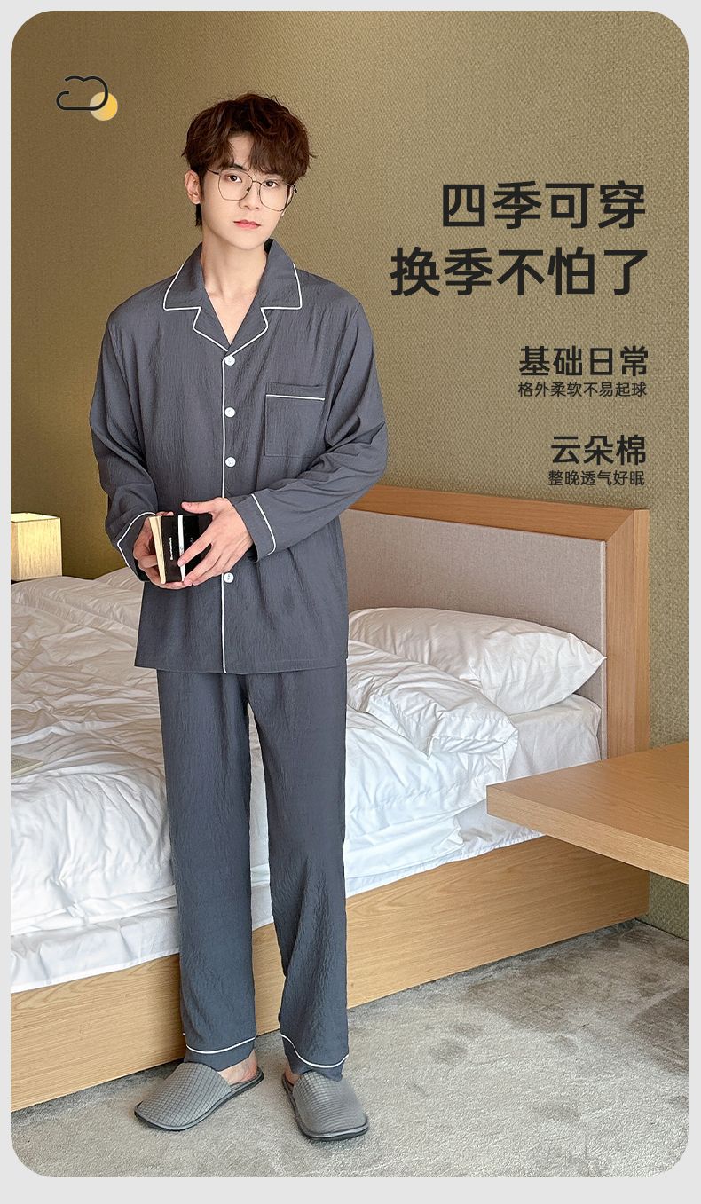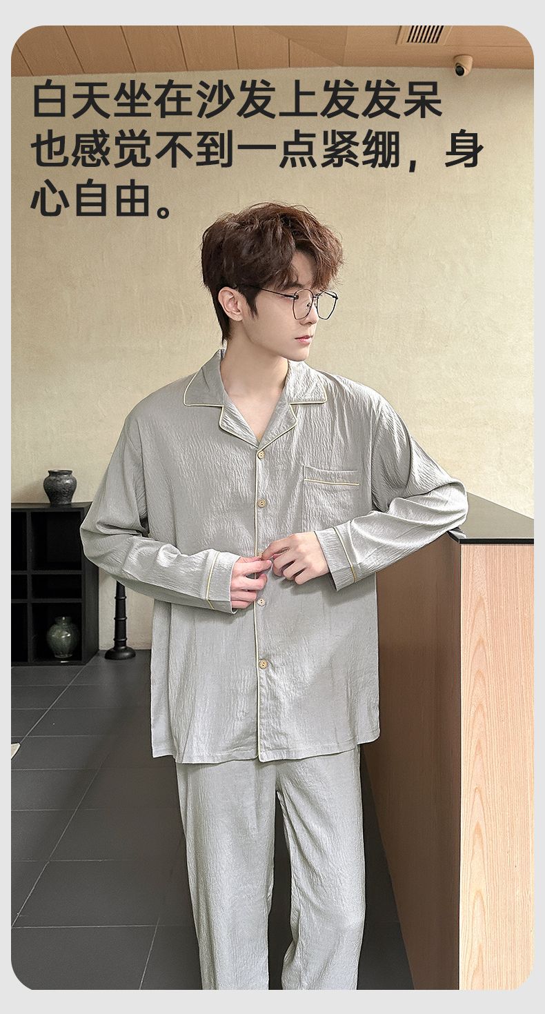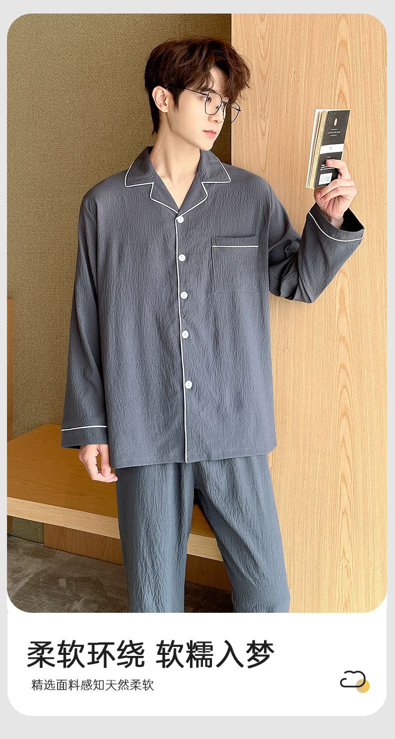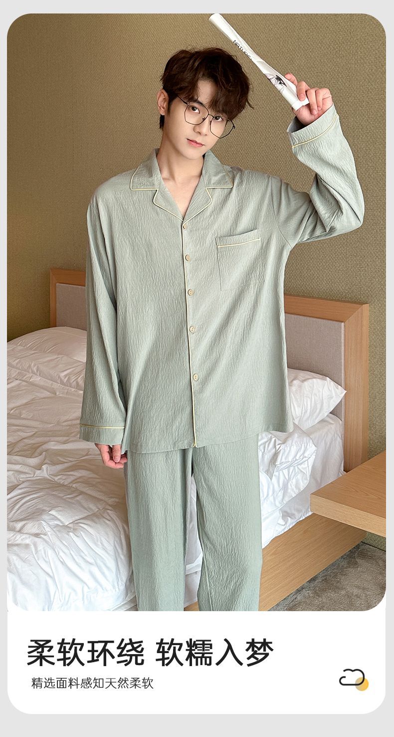 Мужские хлопковые брюки с длинными рукавами, пижамы из двух предметов, весенне-осенний простой однотонный кардиган с лацканами, можно носить вне домашней одежды